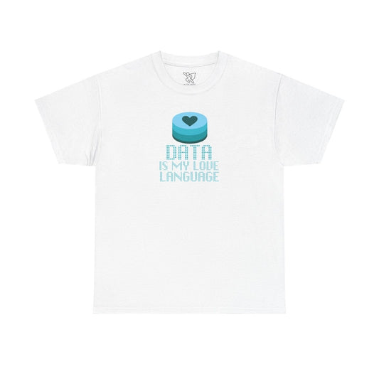 "Data is My Love Language" Casual Unisex Cotton T-Shirt, Tech Enthusiast Gift, Cute Data Lover Apparel, Geeky Gift for Him Her CW-2 Gray Blue