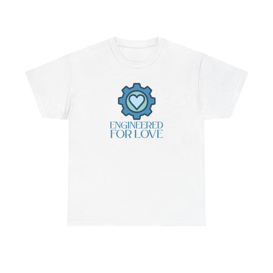 "Engineered for Love" Unisex Heavy Cotton Tee, Gift for Him/Her, Valentine's Day Shirt, Casual Wear CW-2 Blue