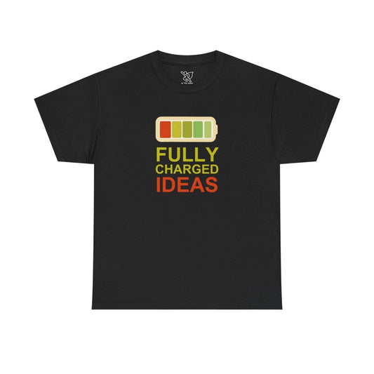 "Fully Charged Ideas" Fun Graphic Tee, Unisex Cotton Shirt, Motivational T-Shirt, Gift for Creatives, Casual Wear CW-1 Yellow Orange