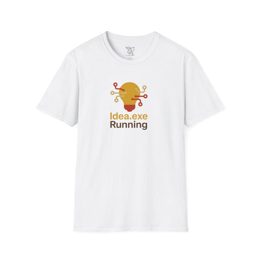"Idea.exe Running" Tech-Inspired Unisex Softstyle T-Shirt, Geek Humor Tee, Casual Everyday Wear, Gift for Programmers, Unique Tech Gifts, Funny Coding Shirt CW-2 Yellow Orange