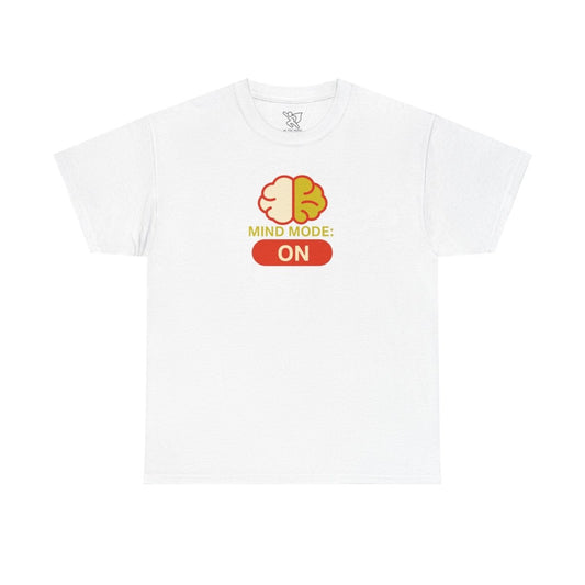 "Mind Mode: ON" Unisex Heavy Cotton Tee, Casual Shirt, Gift for Students, Motivational Apparel, Unique Graphic Tee CW-1 Yellow Orange