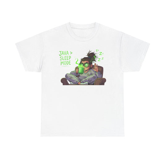 "Java > Sleep Mode" CW-1 Unisex Heavy Cotton Tee, Casual Wear, Gift for Coffee Lovers, Relaxation Shirt, Graphic Tee for Holidays
