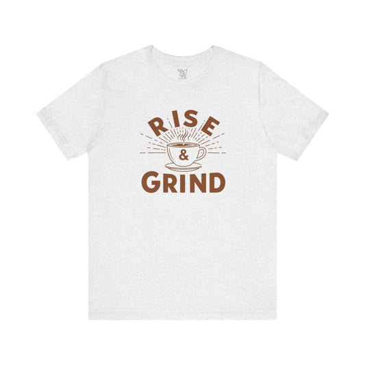 "Rise & Grind" CW-1 Unisex Tee - Motivational Coffee Shirt, Casual Wear, Gift for Coffee Lovers, Unique Graphic Tee, Relaxed Fit