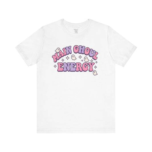 "Main Ghoul Energy" Unisex Short Sleeve T-Shirt, Halloween Party Shirt, Cute Graphic Tee, Gift for Ghost Lovers, Trendy Casual Wear