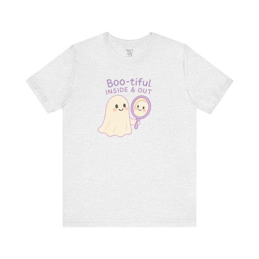 "Boo-tiful Inside Out" Ghost Tee, Cute Halloween Shirt, Unisex Short Sleeve T-Shirt, Fall Apparel, Spooky Vibes, Gift for Halloween Lovers