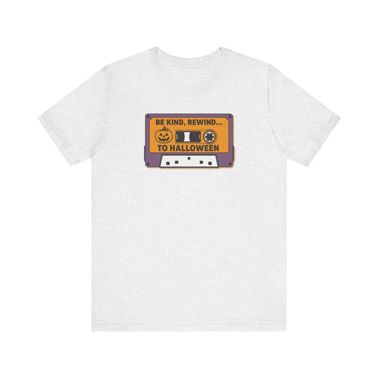 "Be Kind, Rewind to Halloween" T-Shirt, Unisex Casual Wear, Spooky Season Top, Vintage Style Shirt
