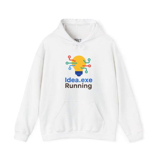 "Idea.exe Running" Unisex Heavy Blend™ Hooded Sweatshirt - Witty Tech Apparel, Vibrant Color Digital-Era Inspired Design