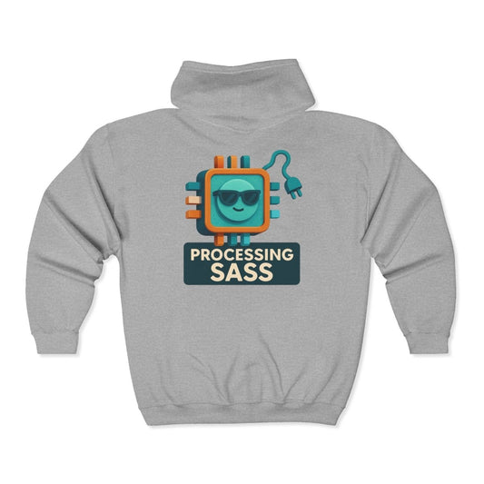"Processing Sass" Stylish Unisex Zip Hoodie for Everyday Comfort, Casual Wear, Gift for Him or Her, Cozy Layer for Any Occasion, Perfect for All Seasons