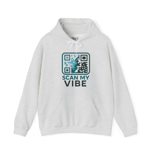 "Scan My Vibe" Hoodie, Unisex Sweatshirt, Casual Streetwear, Trendy Gift, Tech Apparel, Perfect for Events, Comfortable Fashion