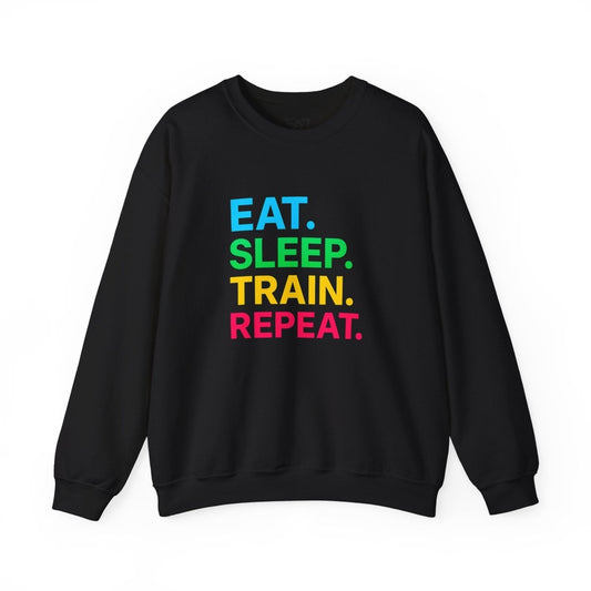 "EAT.SLEEP.TRAIN.REPEAT." Fitness Crewneck Sweatshirt - Ideal for Gym Lovers, Athletes, Workout Gear, Gift Idea for Health Buff