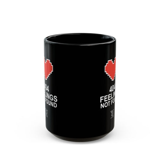 "404 Feelings Not Found" Mug | Funny Black Coffee Cup | Unique Gift for Geeks, Programmers, Tech Lovers, Birthday, Holiday
