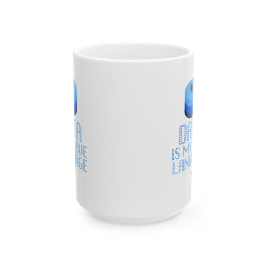 "Data is My Love Language" Ceramic Coffee Mug - Inspirational Quote for Daily Motivation, Gift for Friends, Blue Design for Home or Office