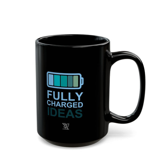 "Fully Charged Ideas" Black Coffee Mug | Motivational Office Gift, Inspirational Drinkware, Funny Mug for Creatives, Gift for Writers