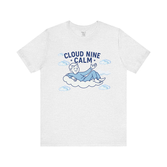 "Cloud Nine Calm" Relaxed Unisex Jersey Short Sleeve T-Shirt, Gift for Mindfulness, Cozy Fashion, Casual Wear, Relaxation Outfit - CW1 Blue