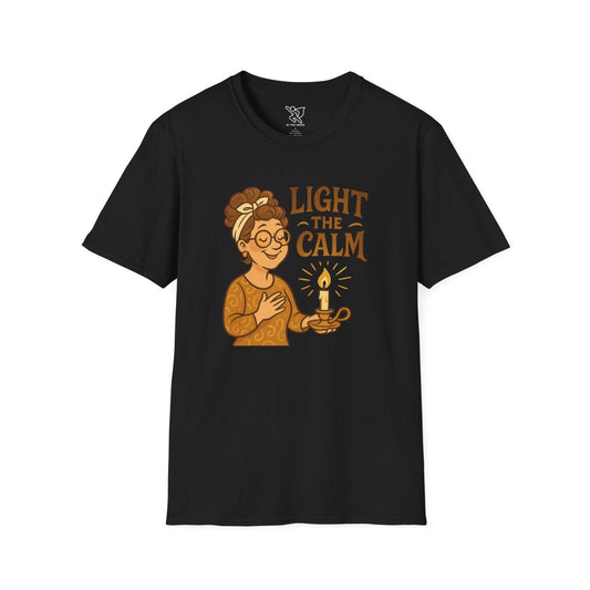 "Light the Calm" Unisex Softstyle Tee, Wellness Apparel, Cozy Gift, Self-Care Shirt, Mindfulness Clothing, Hopeful Message Tee