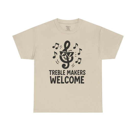 "Treble Makers Welcome" Unisex Heavy Cotton Tee, Music Lover Shirt, Music Teacher, Gift for Musicians, Funny Quote Tee, Casual Wear, Concert Outfit