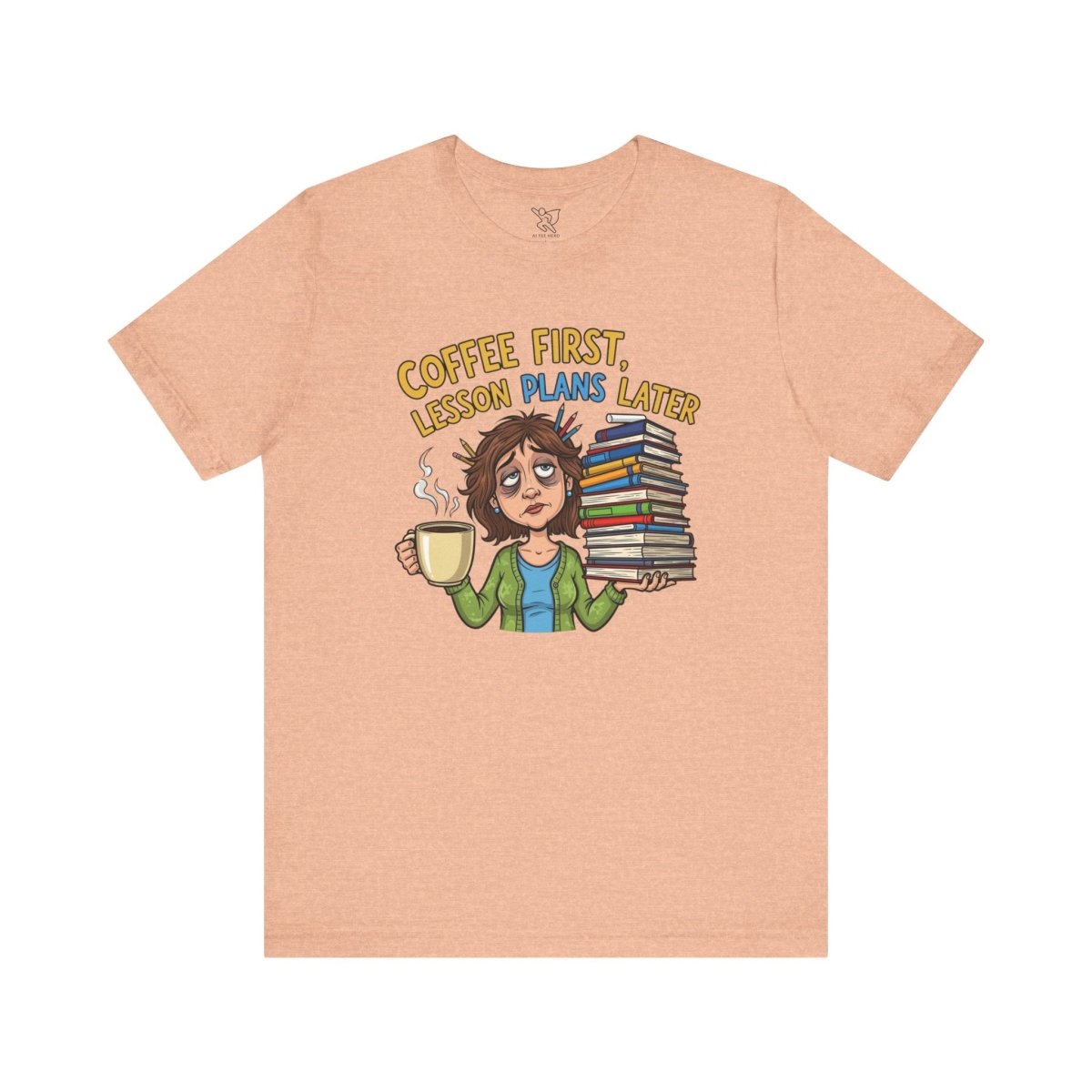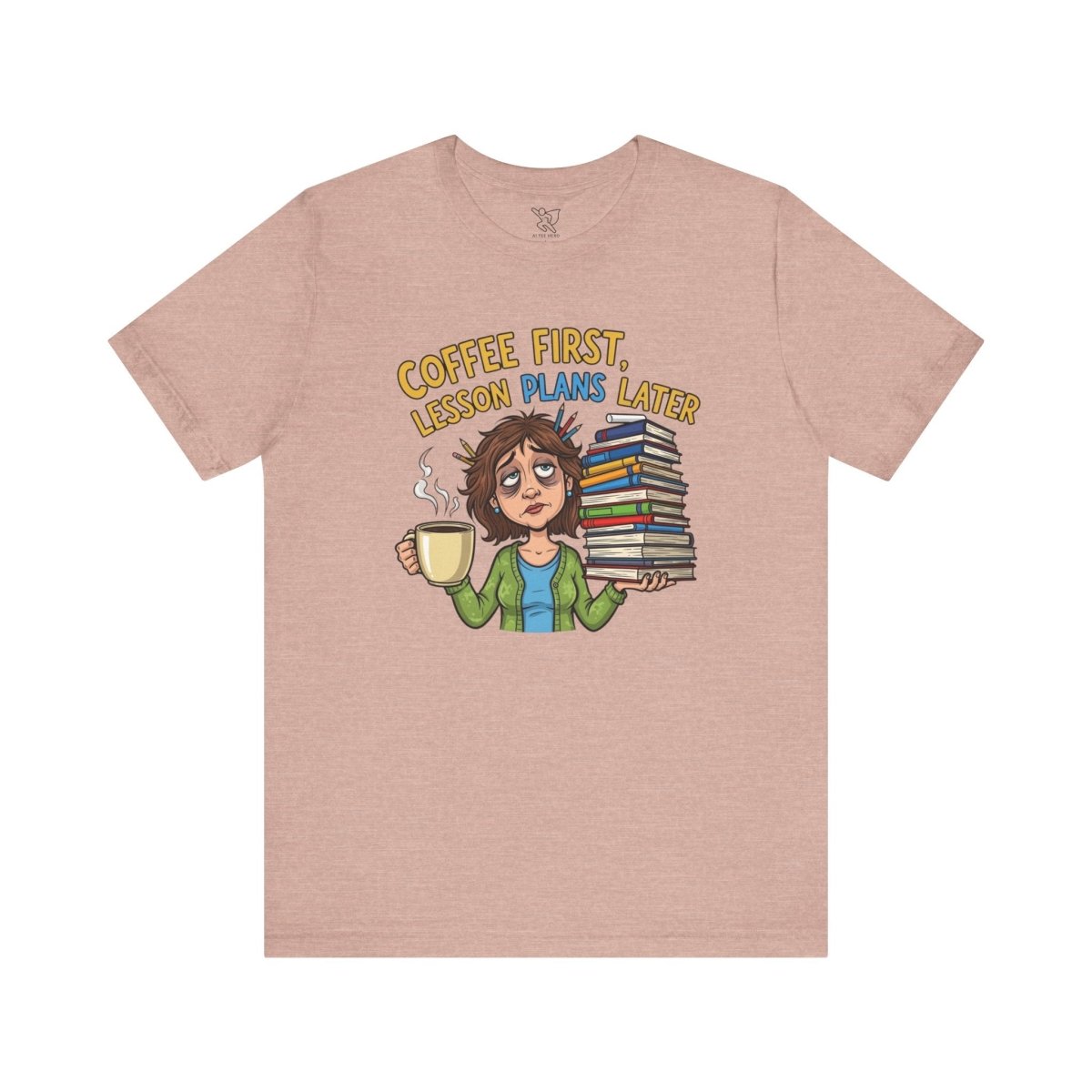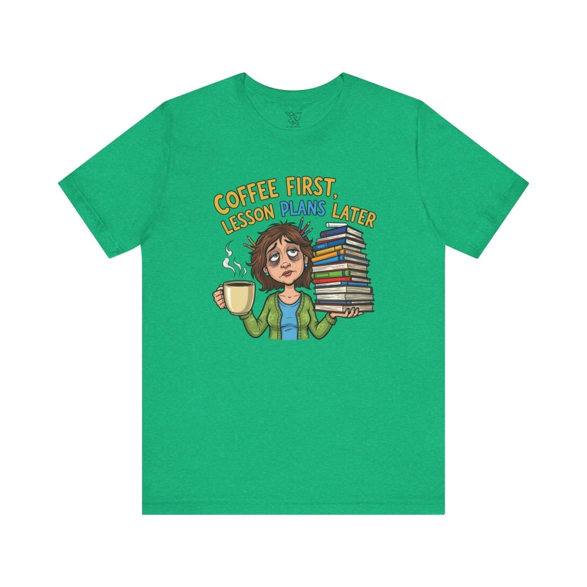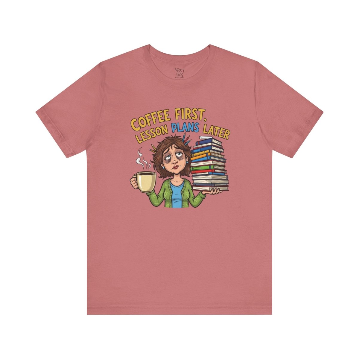 "Coffee First, Lesson Plans Later" CW 1 - Tee for Teachers, Funny Teacher Appreciation Gift, Unisex Jersey Tee, Back to School Shirt, Classroom Humor Apparel