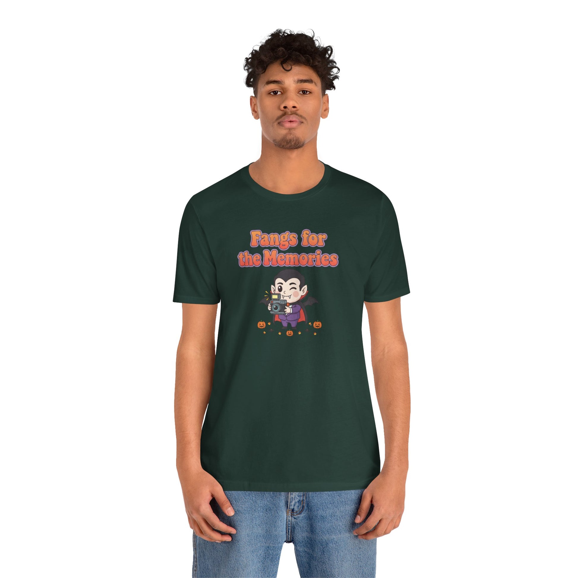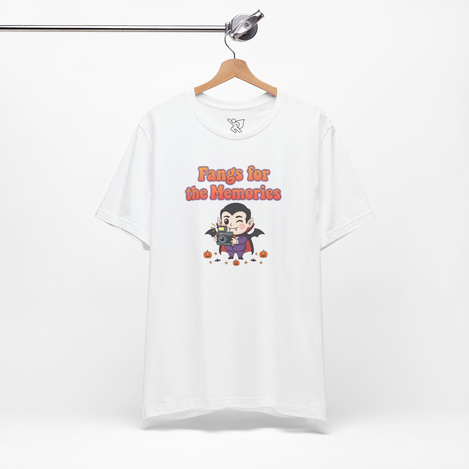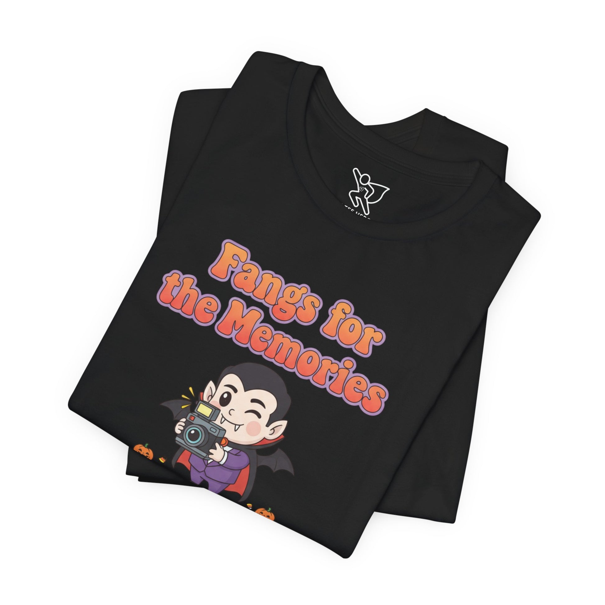 "Fangs for the Memories" Unisex Short Sleeve Shirt, Casual Halloween Outfit, Gift for Spooky Season, Halloween Shirt