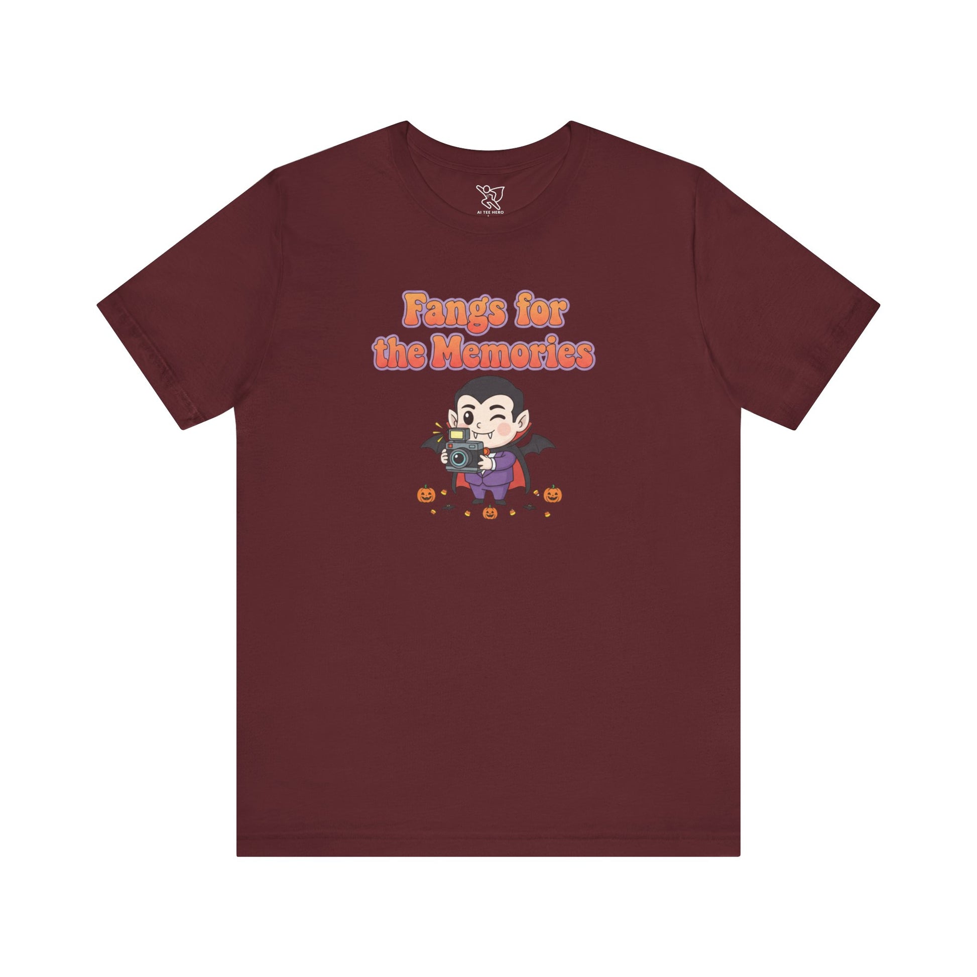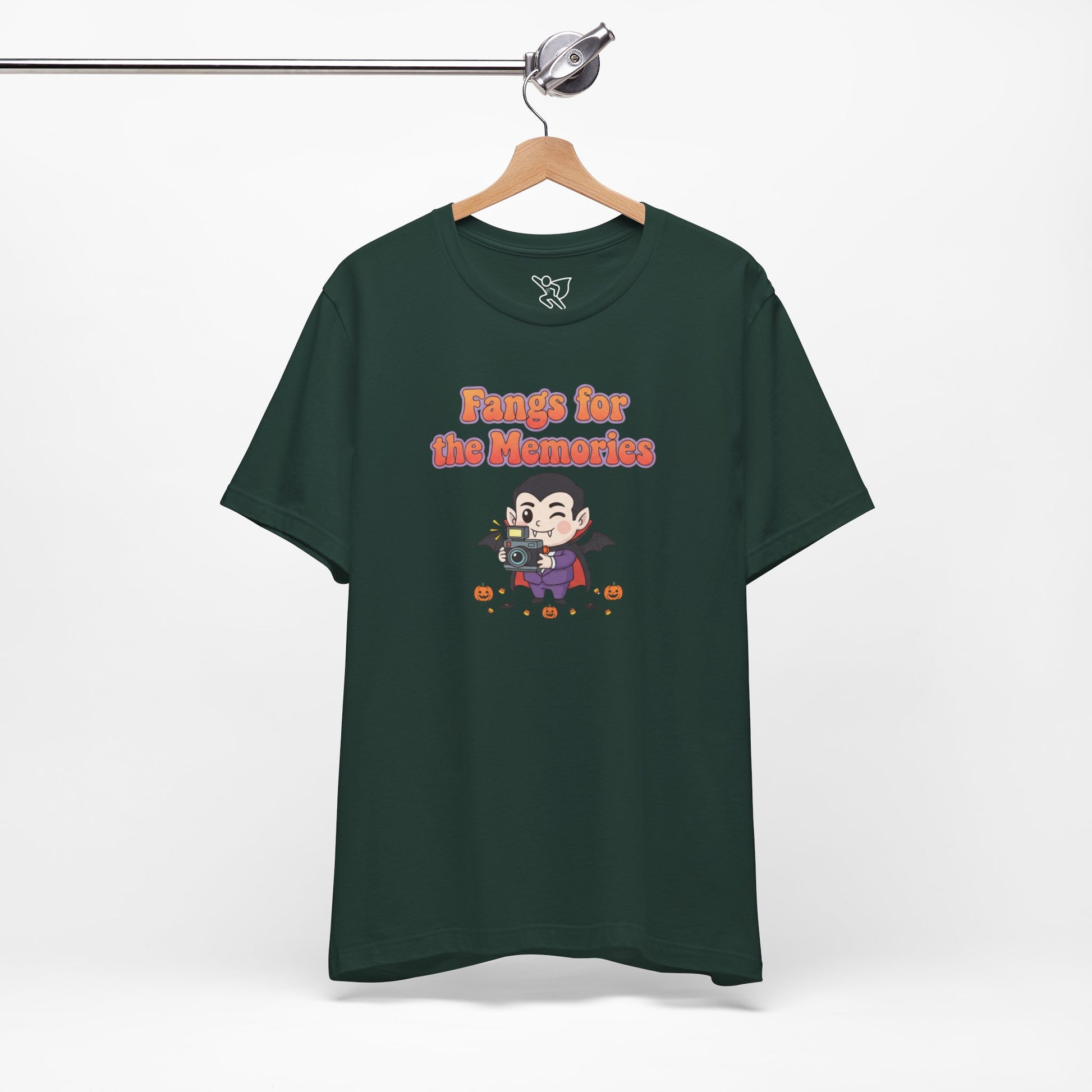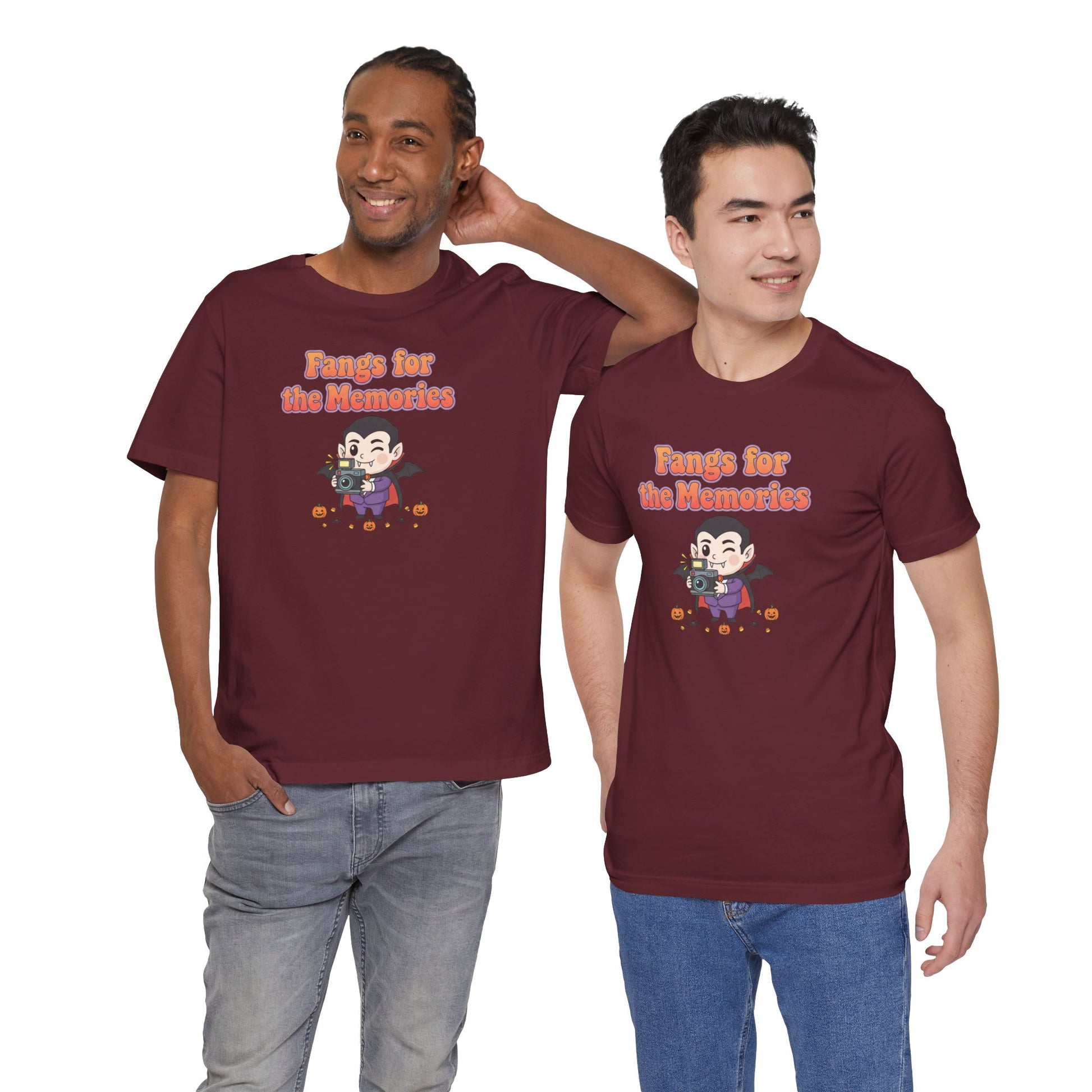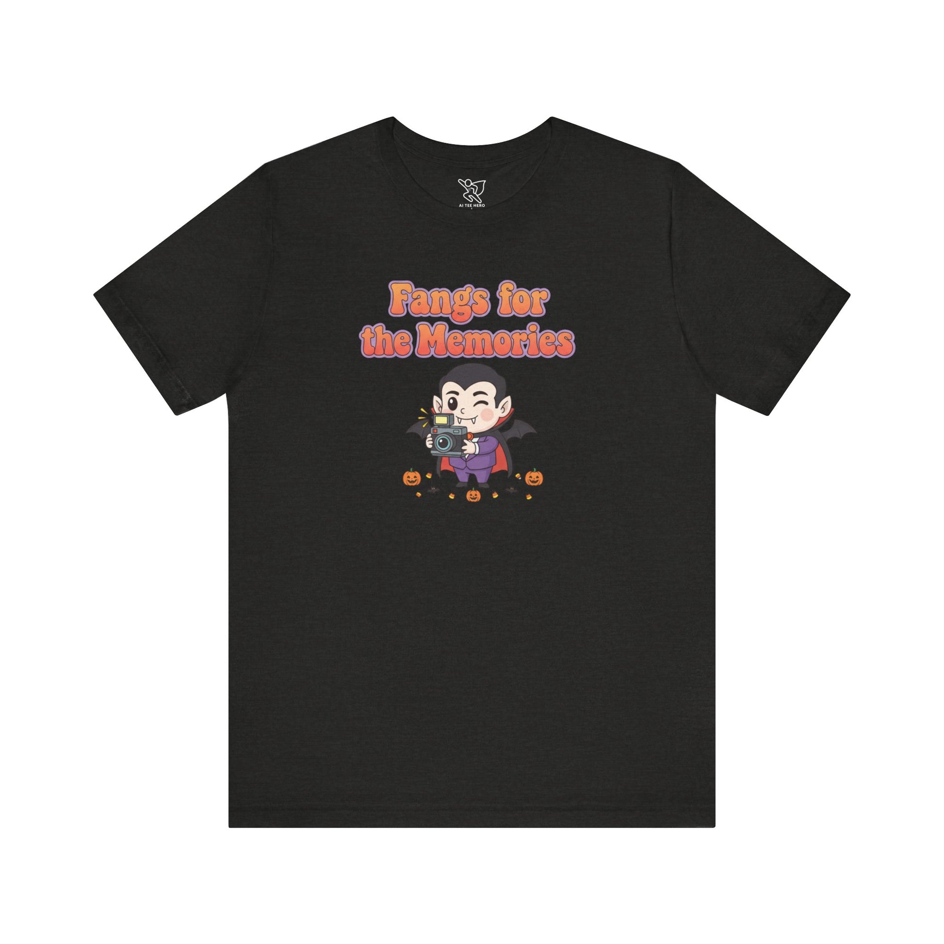 "Fangs for the Memories" Unisex Short Sleeve Shirt, Casual Halloween Outfit, Gift for Spooky Season, Halloween Shirt