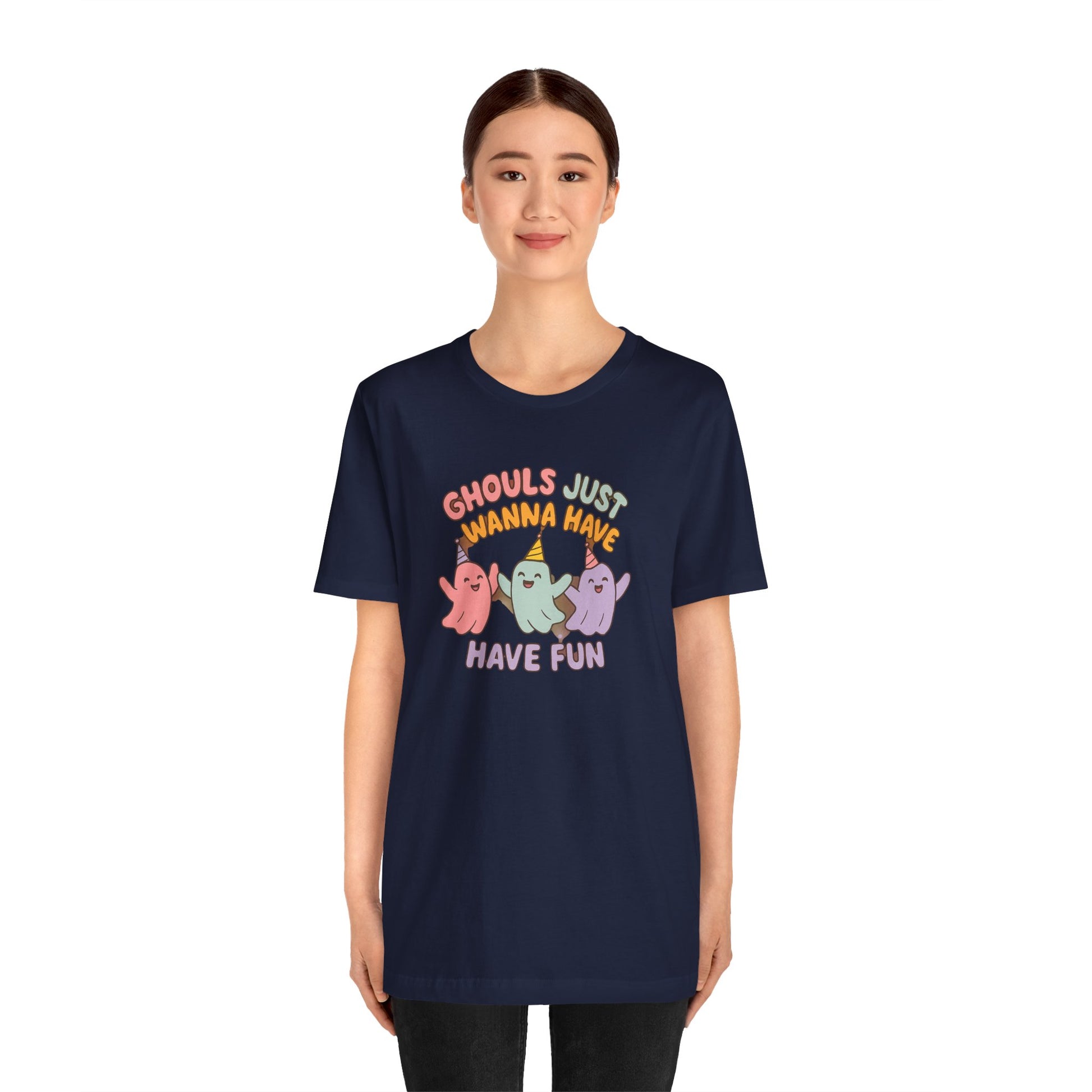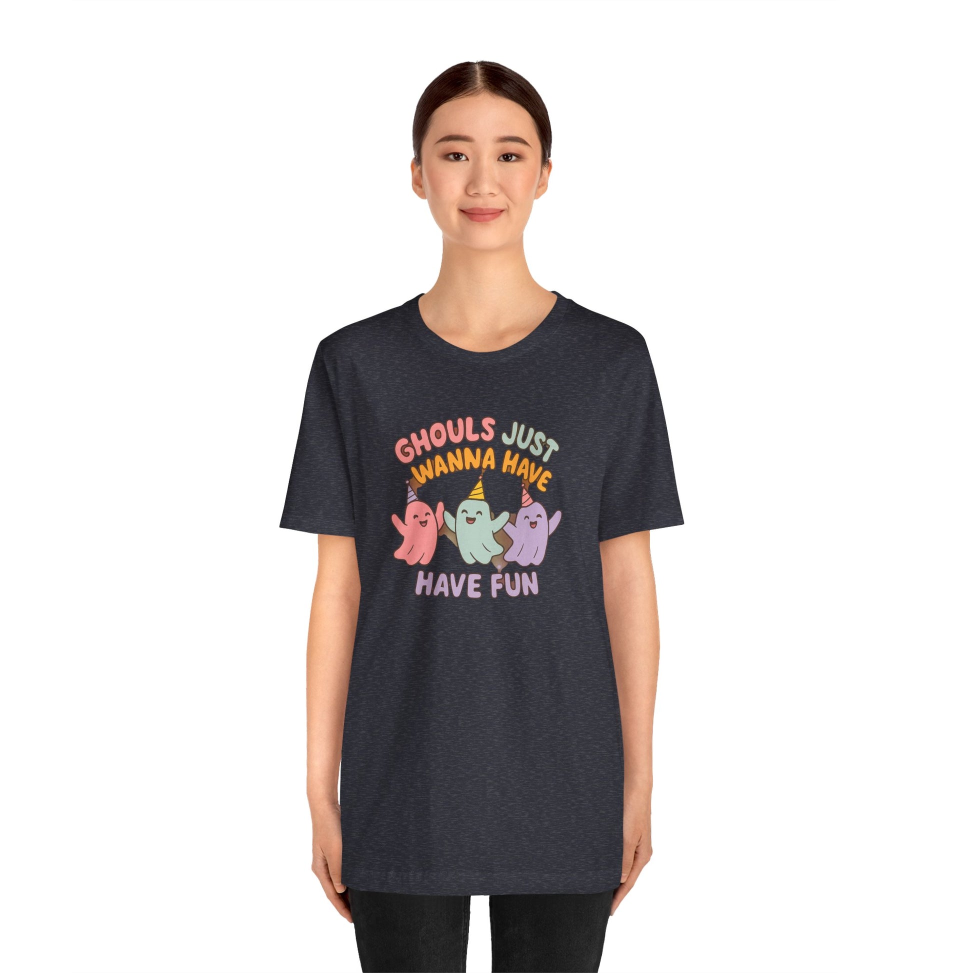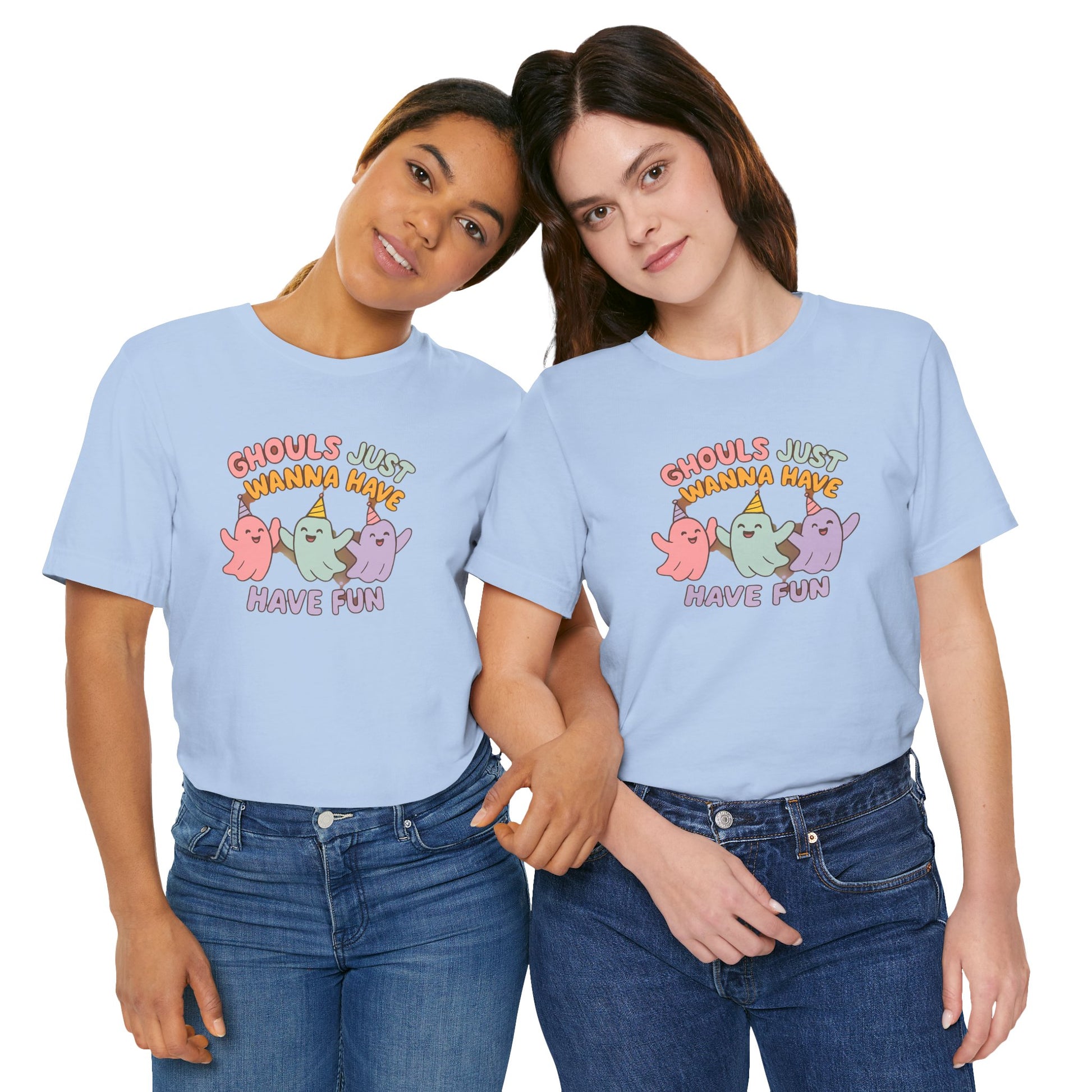 "Ghouls Just Wanna Have Fun" T-Shirt for Halloween, Unisex Graphic Shirt, Cute Ghosts Tee, Casual Wear, Gift for Friends