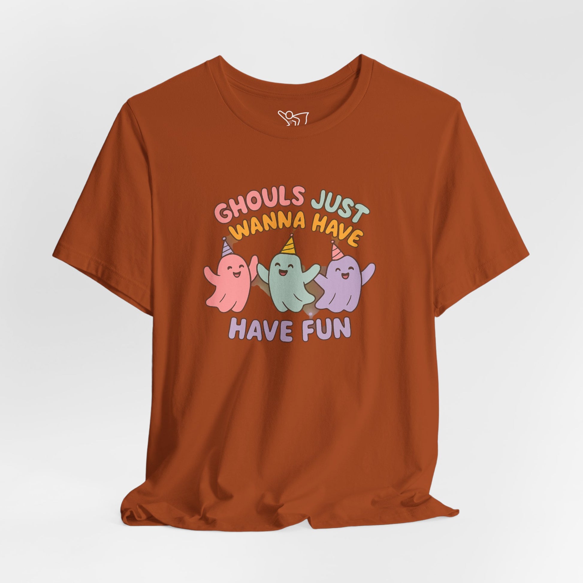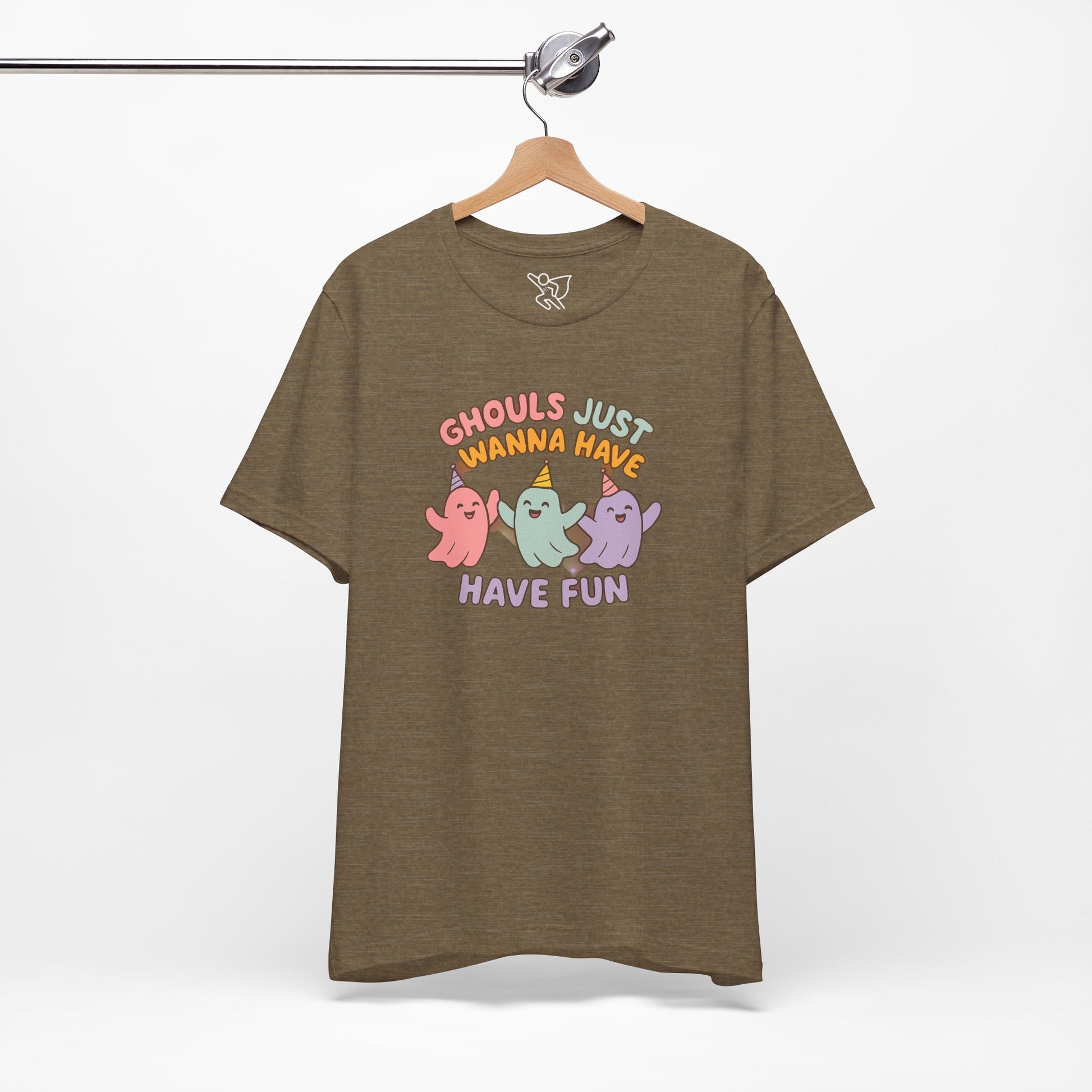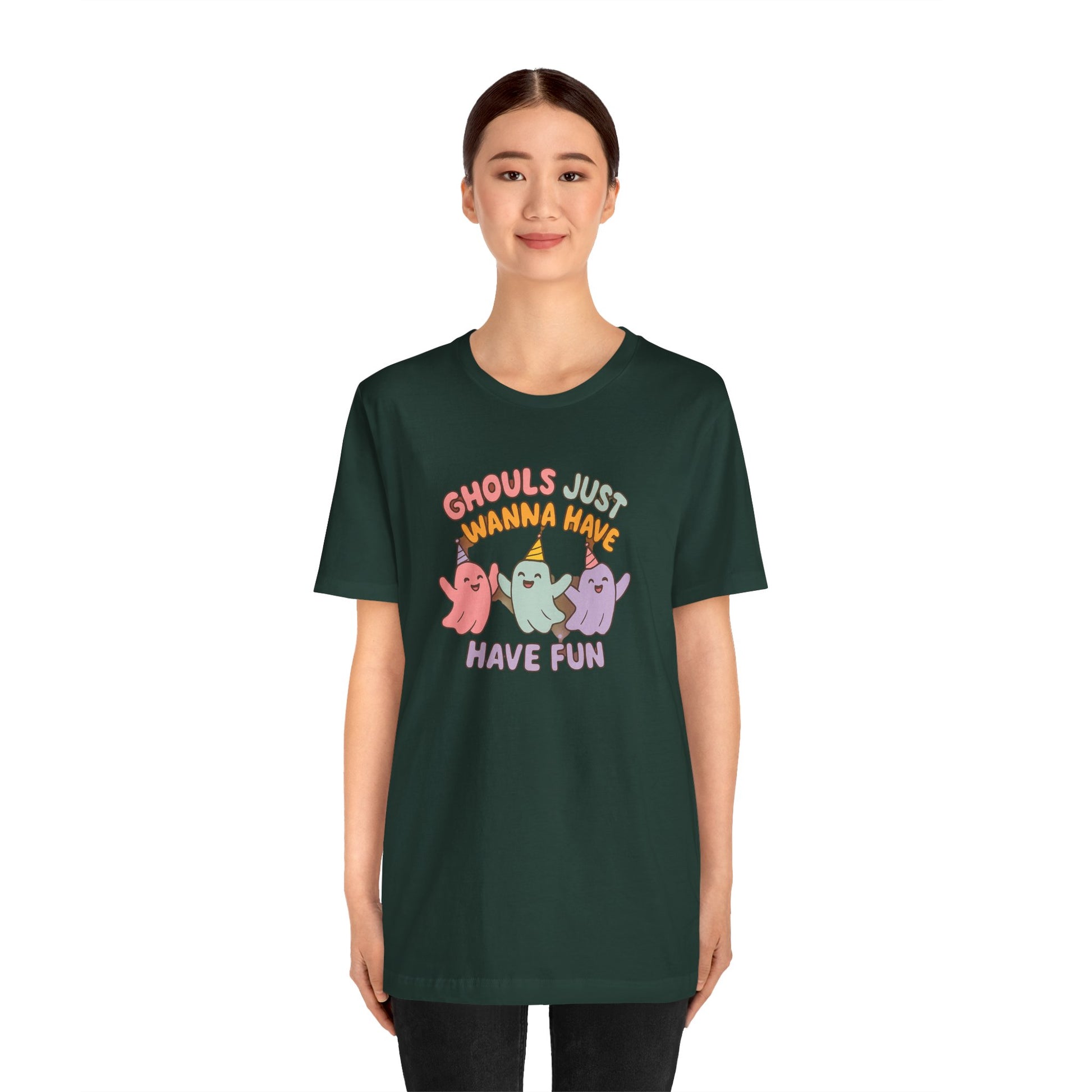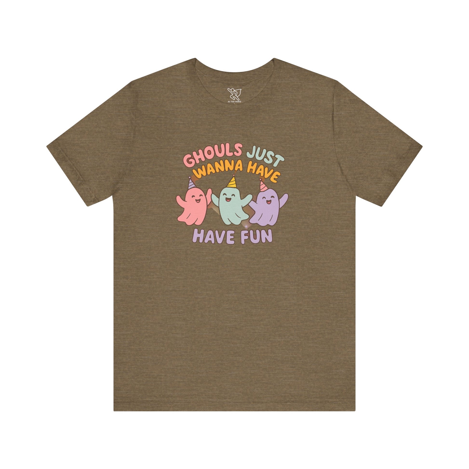 "Ghouls Just Wanna Have Fun" T-Shirt for Halloween, Unisex Graphic Shirt, Cute Ghosts Tee, Casual Wear, Gift for Friends