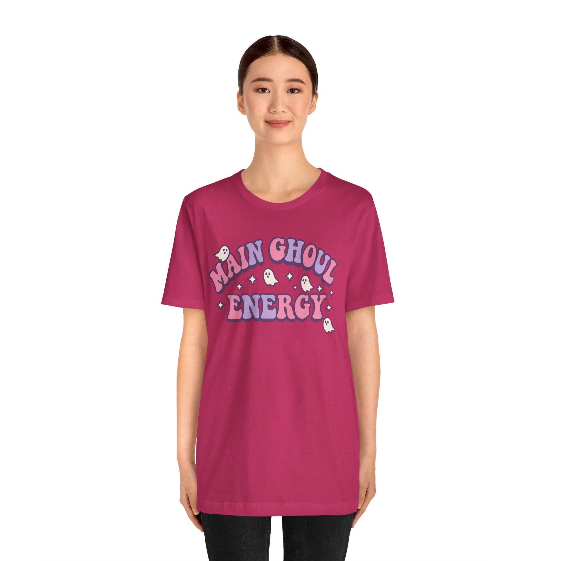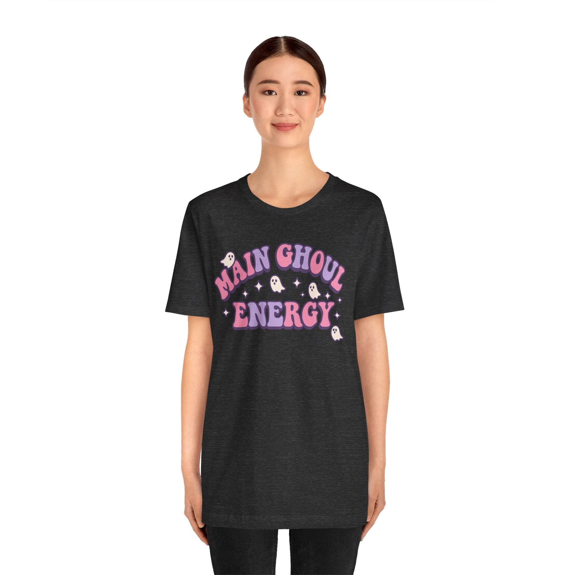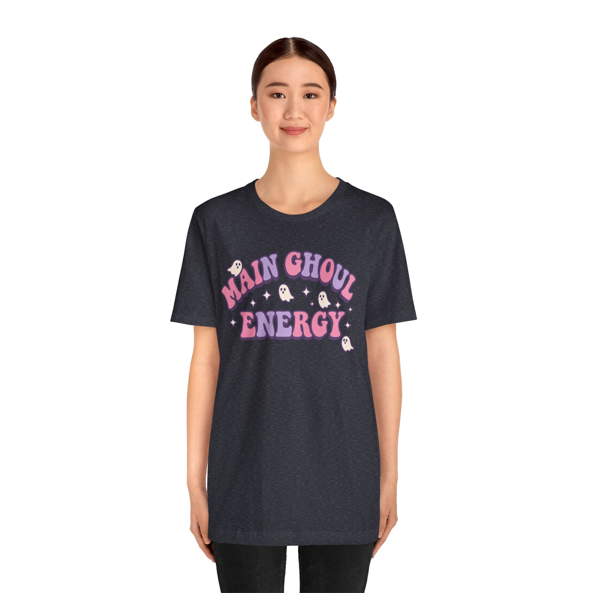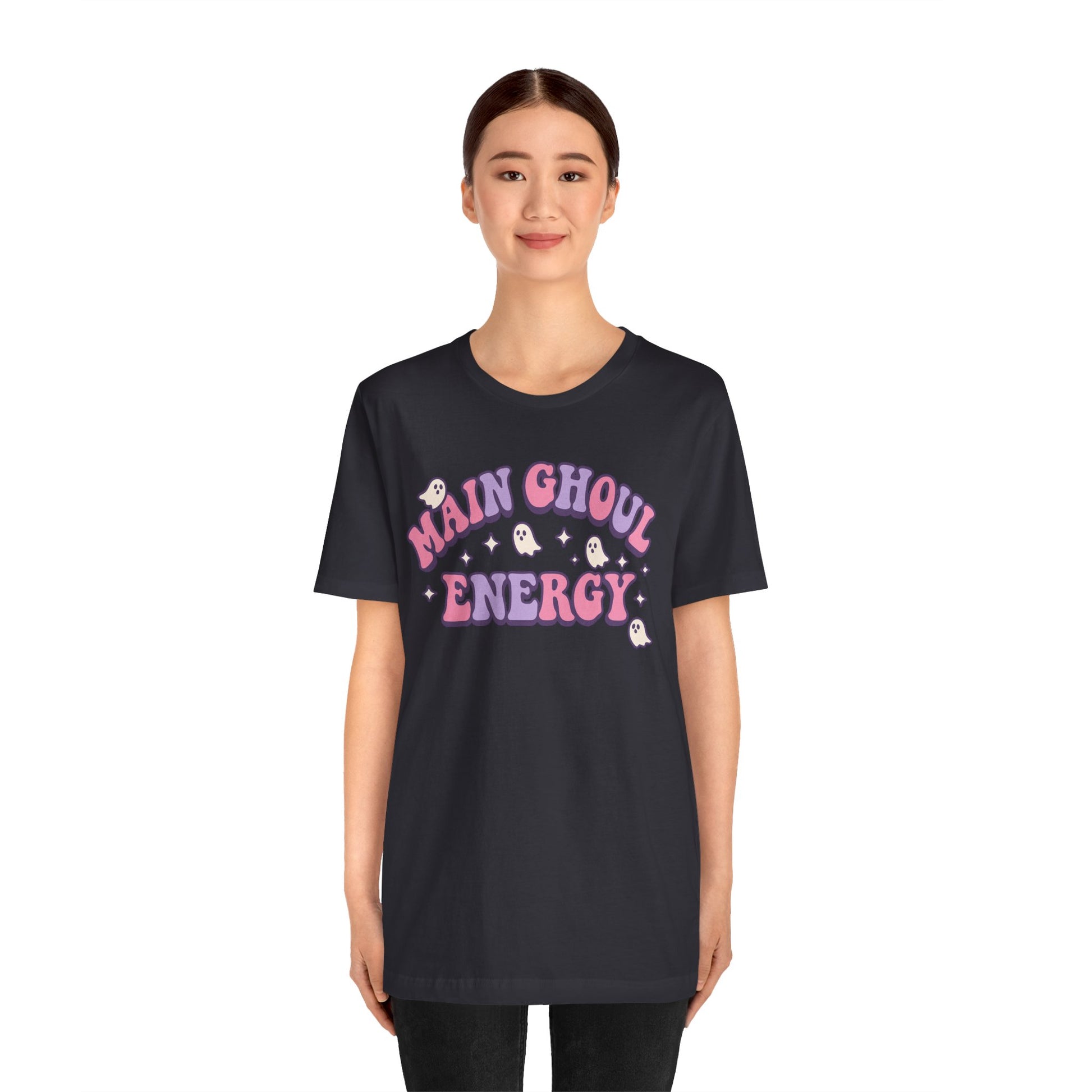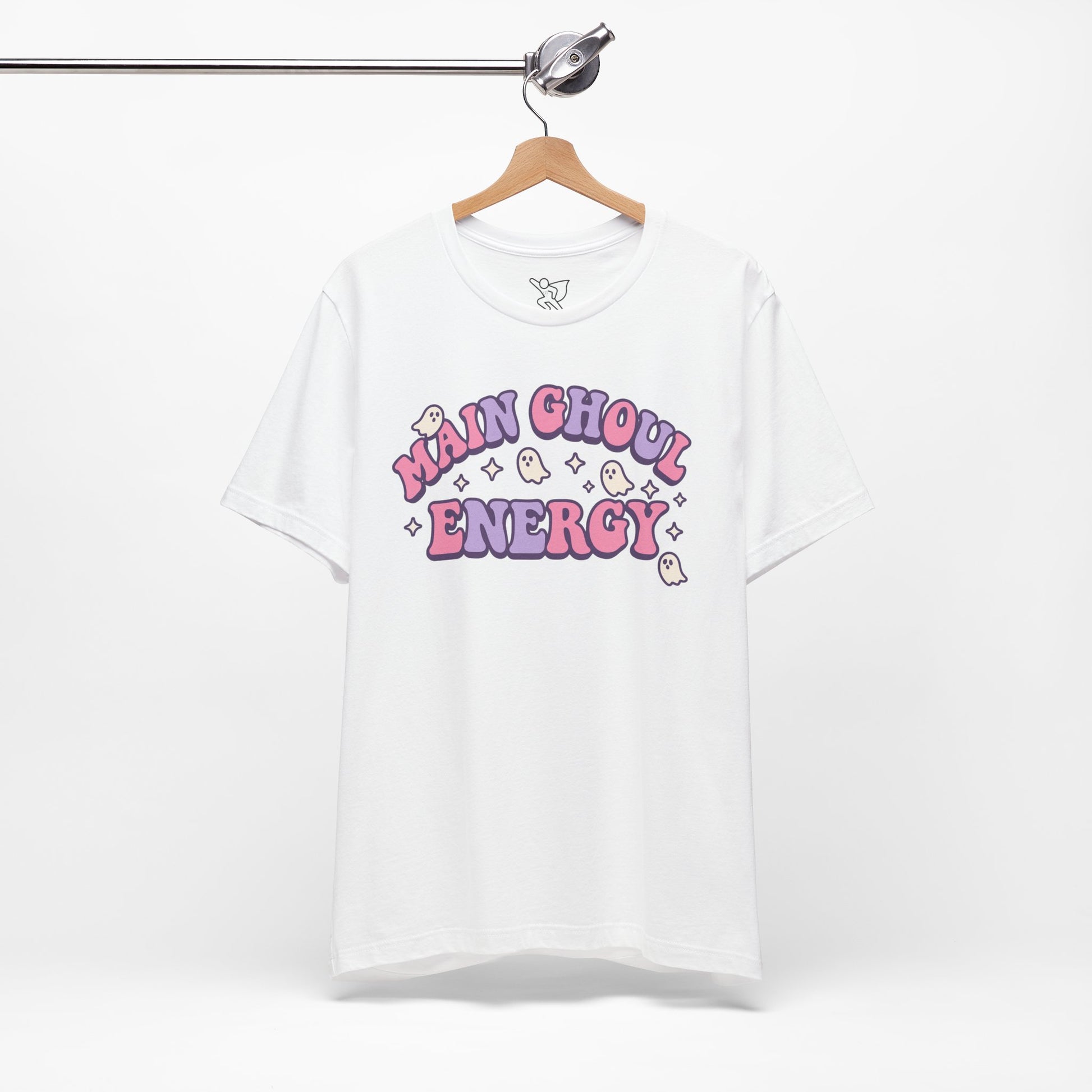 "Main Ghoul Energy" Unisex Short Sleeve T-Shirt, Halloween Party Shirt, Cute Graphic Tee, Gift for Ghost Lovers, Trendy Casual Wear