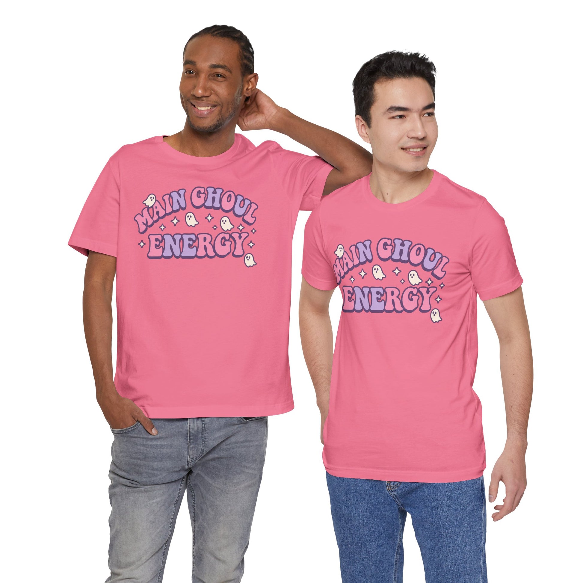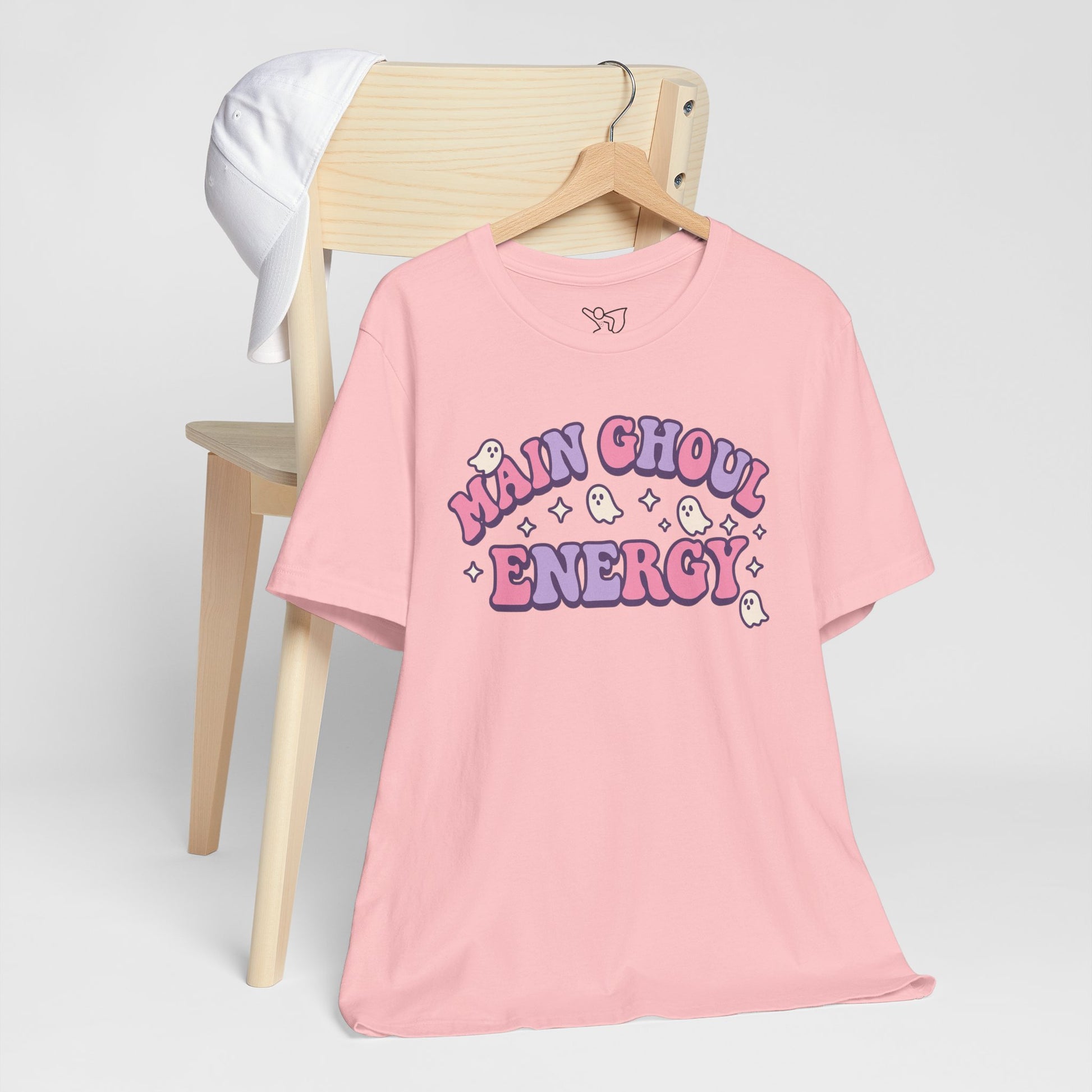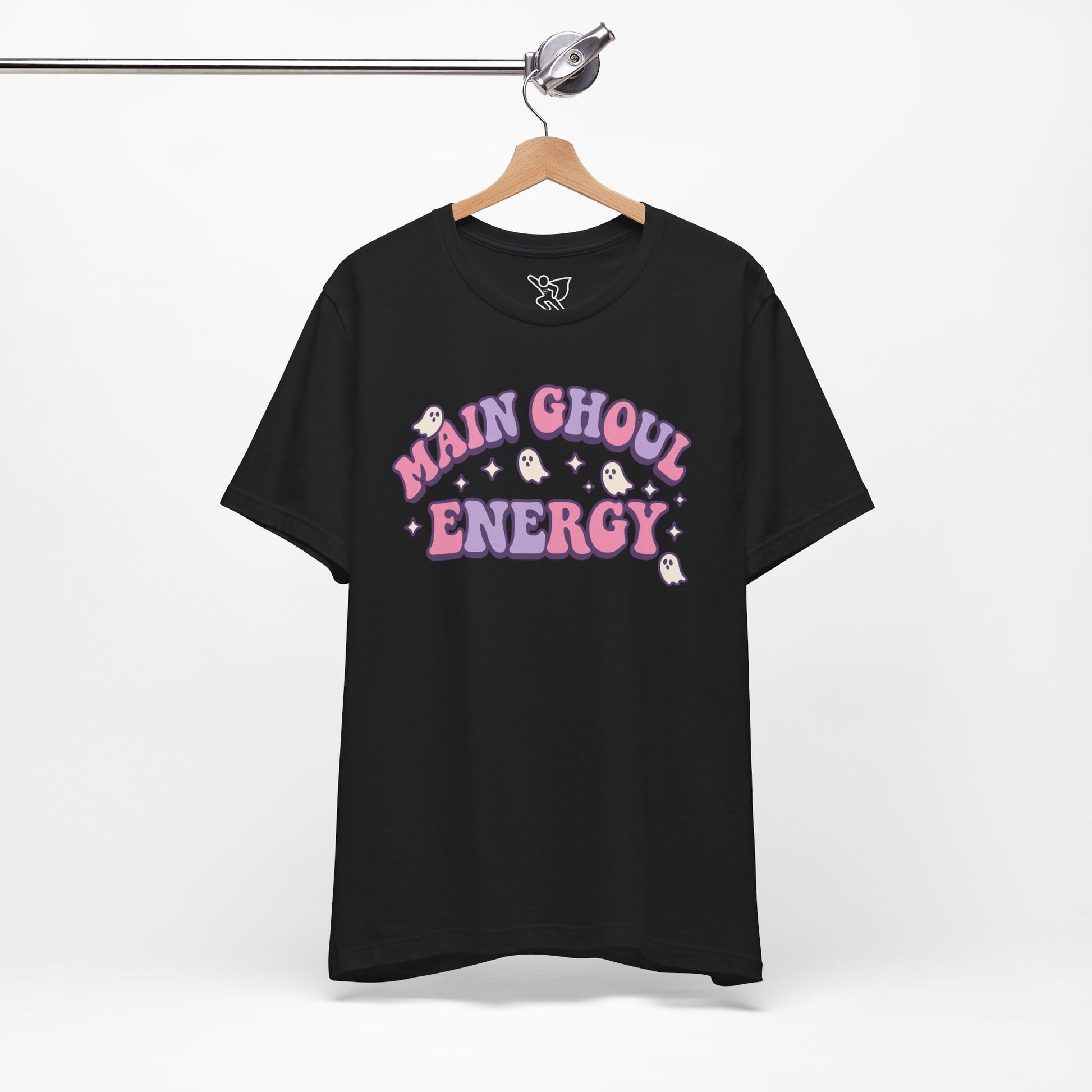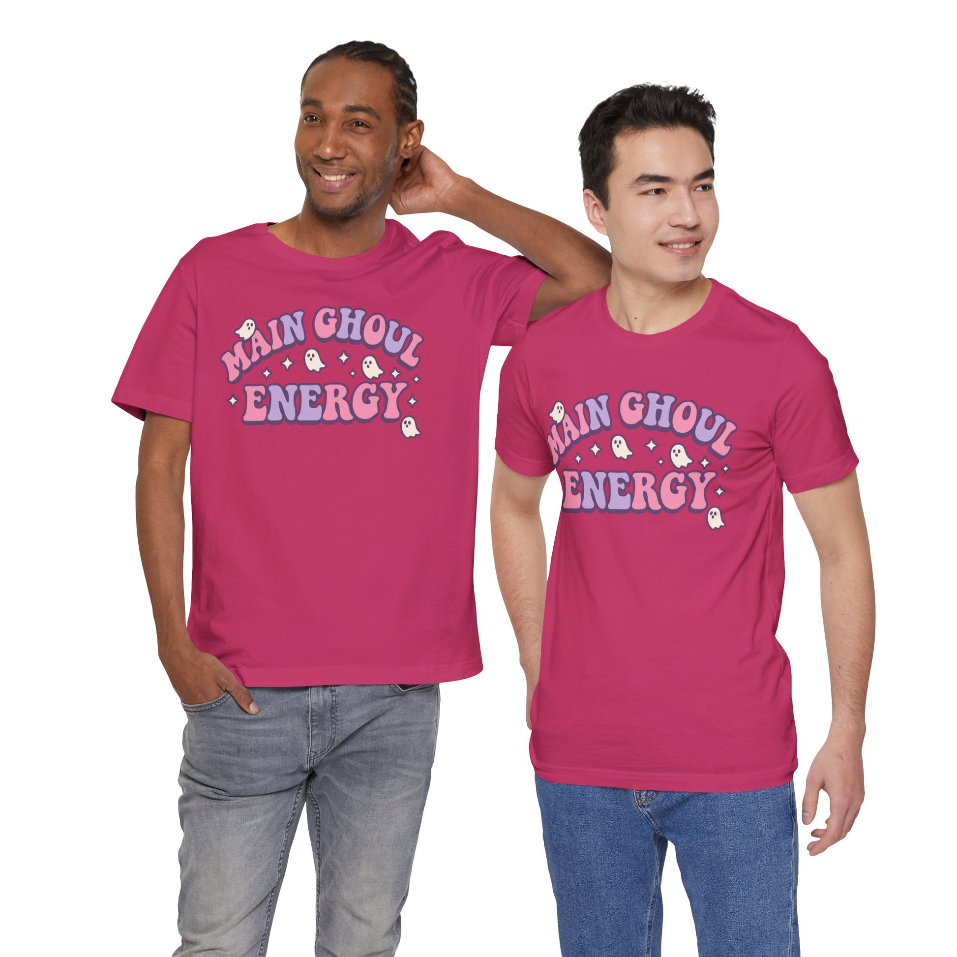 "Main Ghoul Energy" Unisex Short Sleeve T-Shirt, Halloween Party Shirt, Cute Graphic Tee, Gift for Ghost Lovers, Trendy Casual Wear
