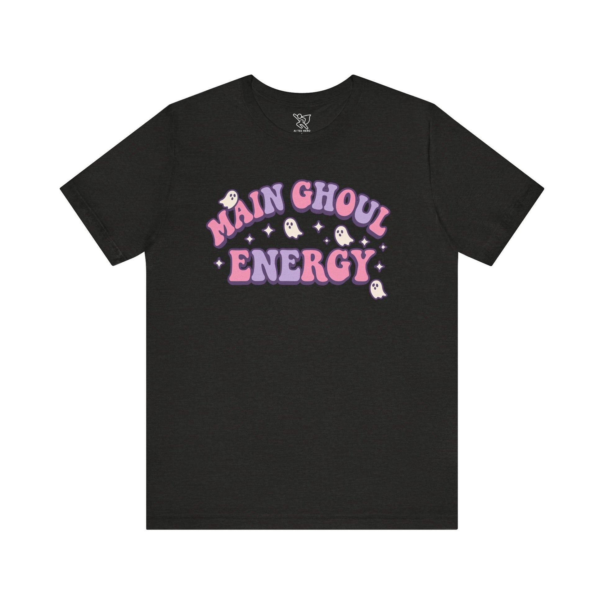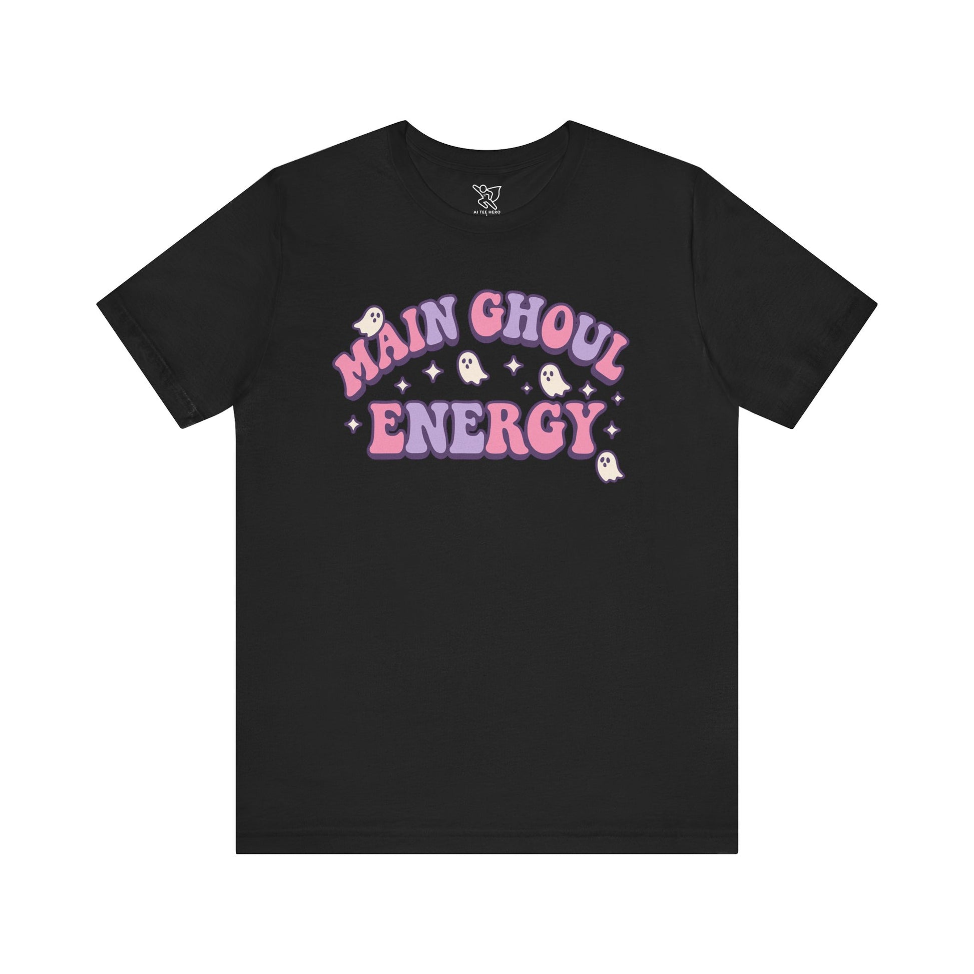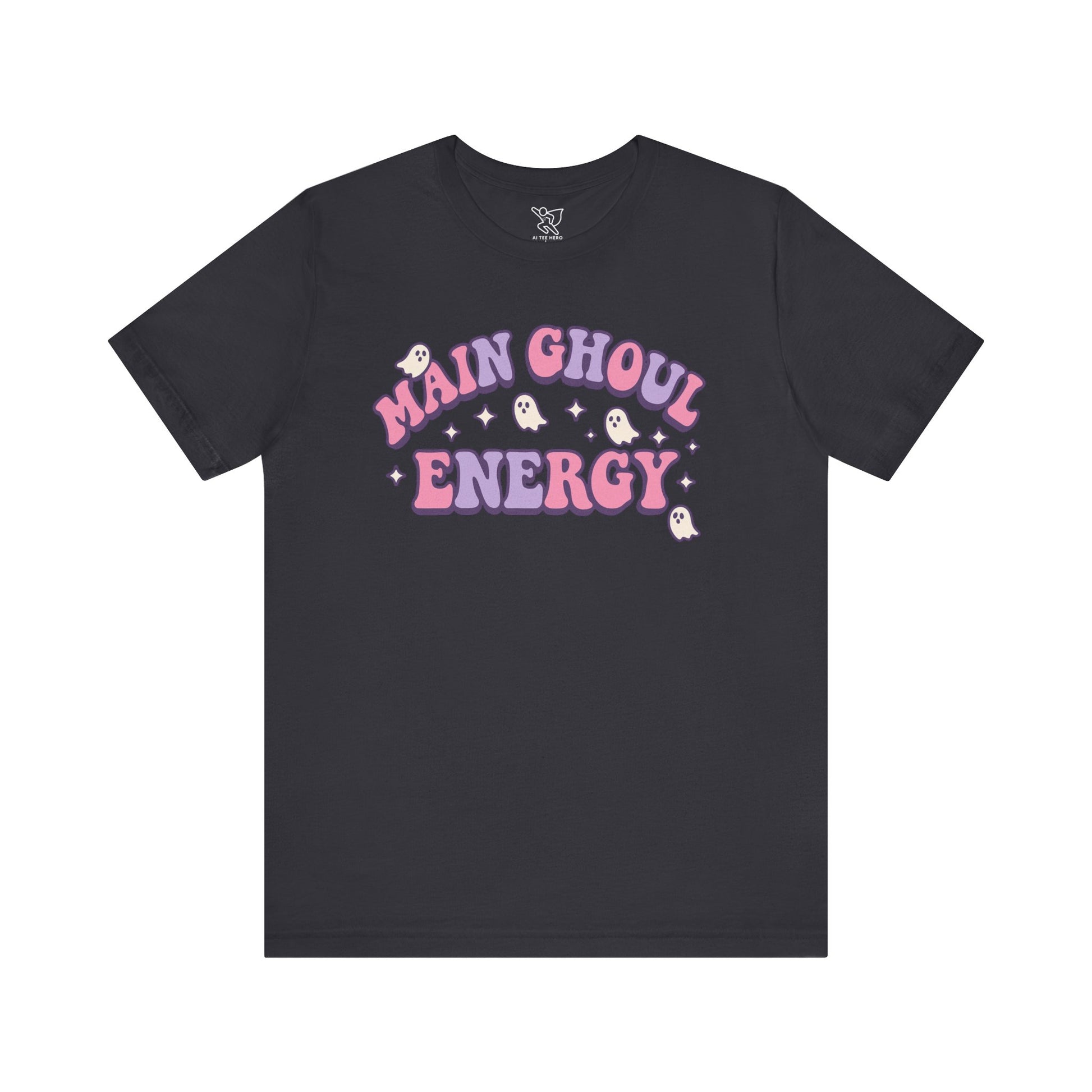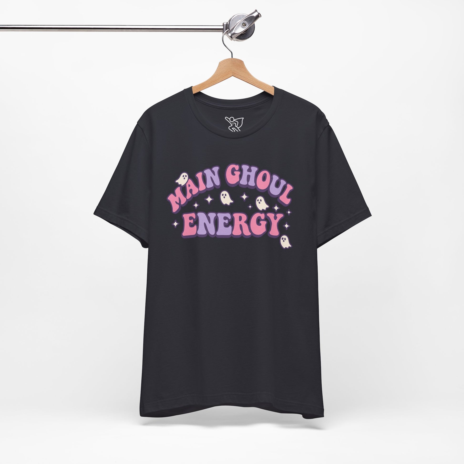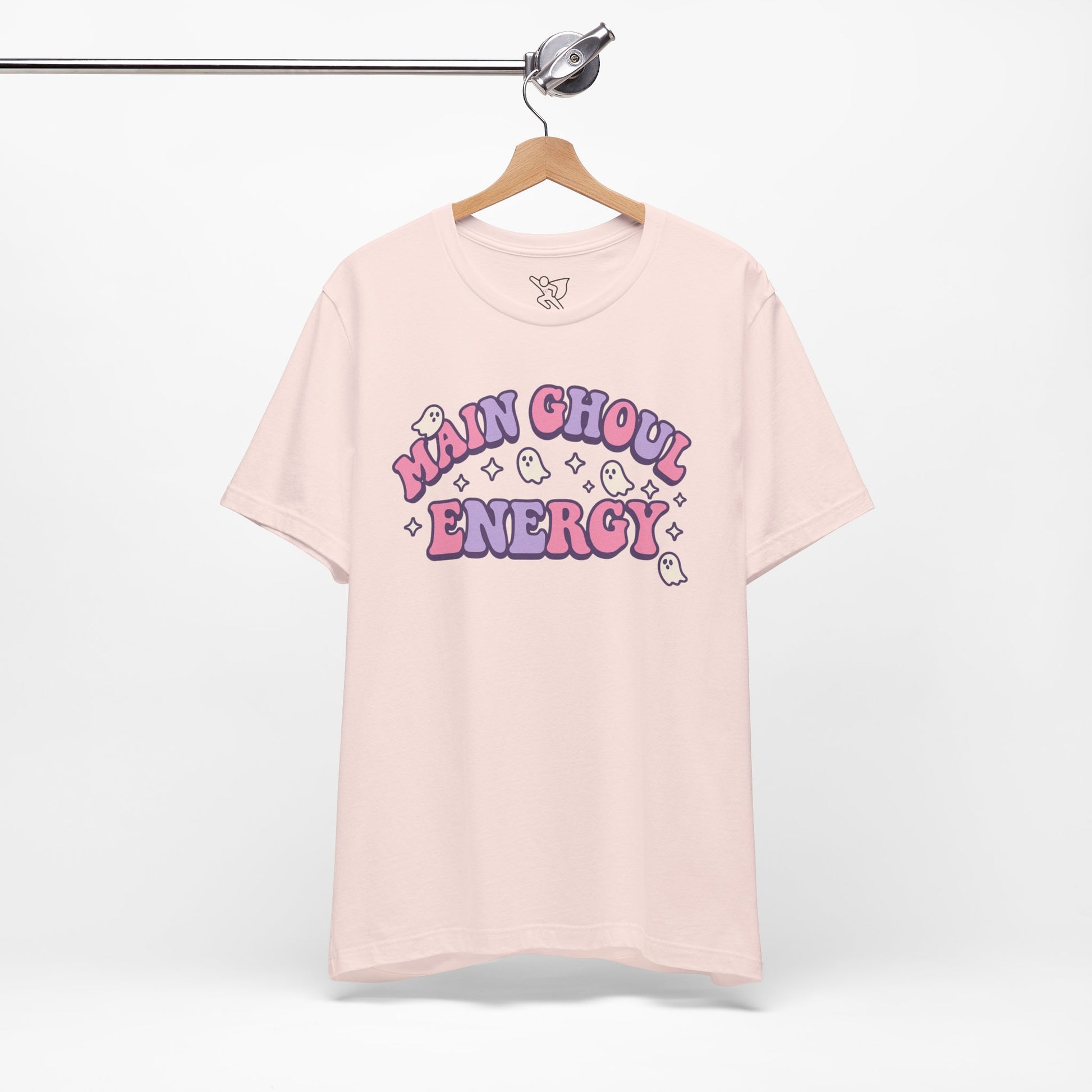 "Main Ghoul Energy" Unisex Short Sleeve T-Shirt, Halloween Party Shirt, Cute Graphic Tee, Gift for Ghost Lovers, Trendy Casual Wear