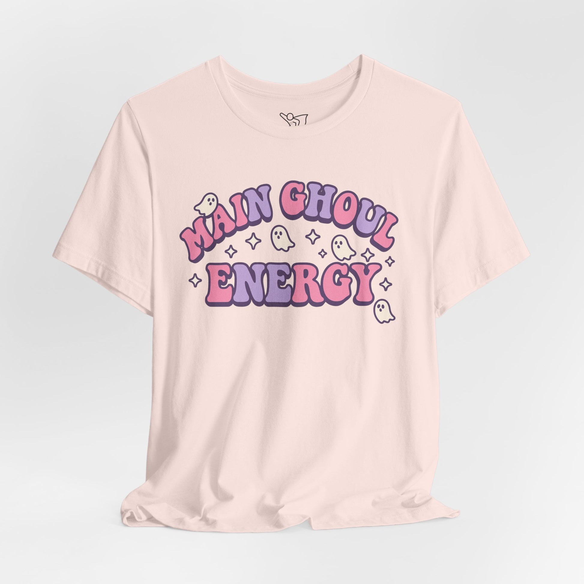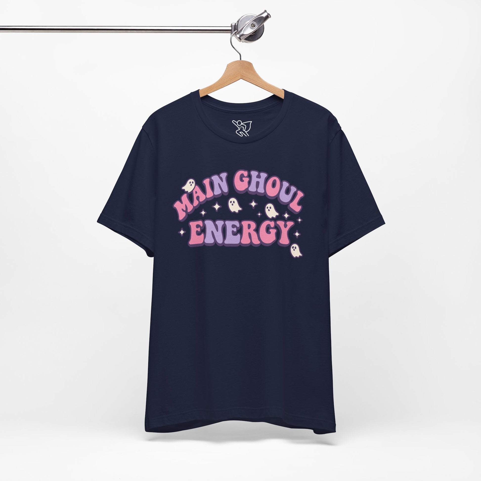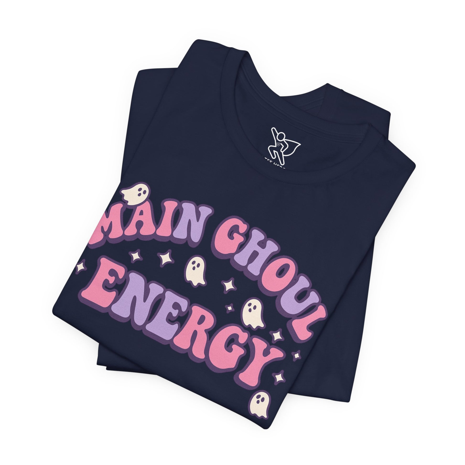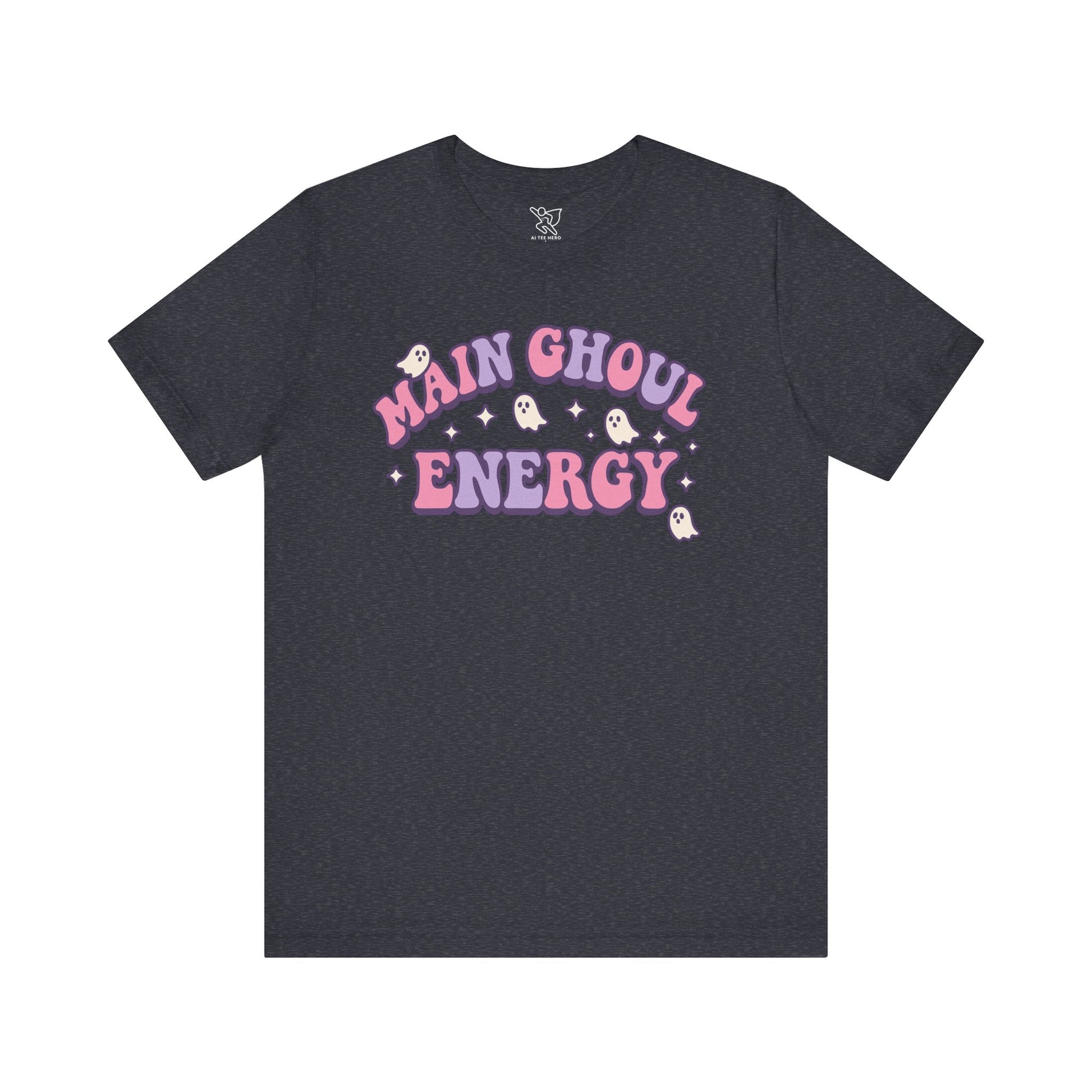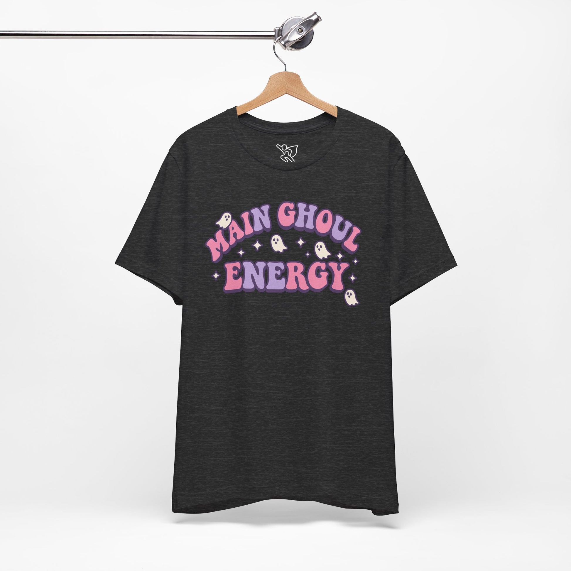 "Main Ghoul Energy" Unisex Short Sleeve T-Shirt, Halloween Party Shirt, Cute Graphic Tee, Gift for Ghost Lovers, Trendy Casual Wear