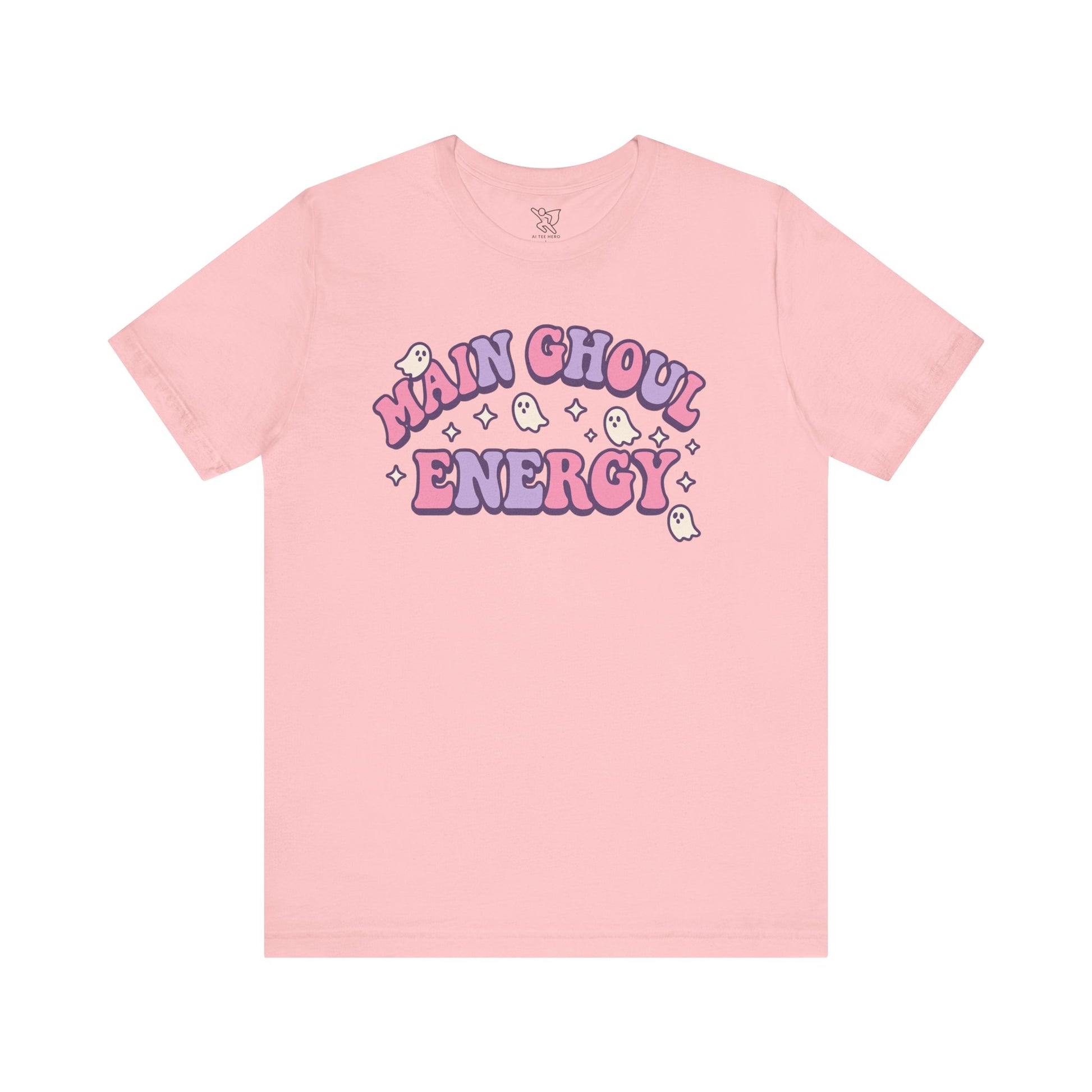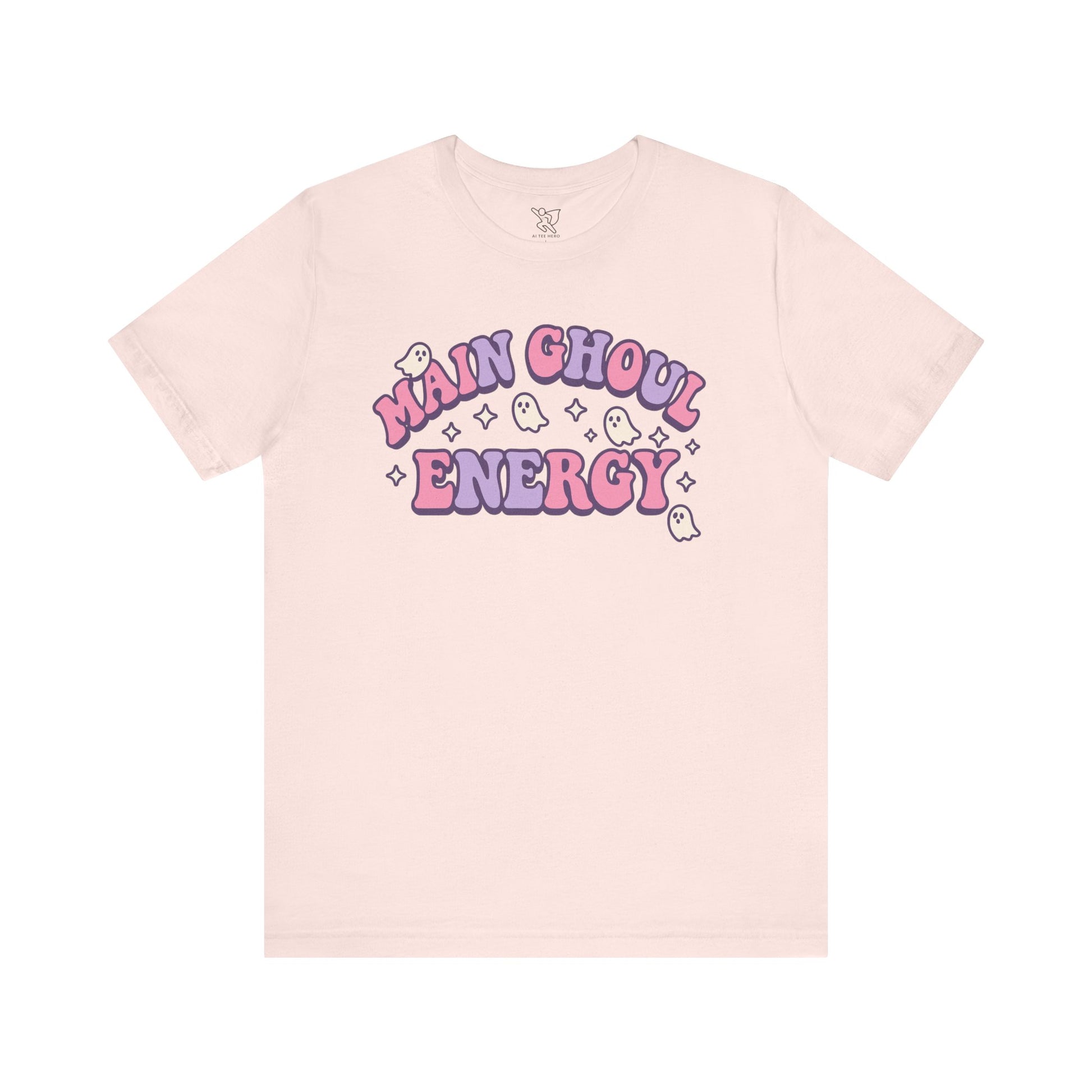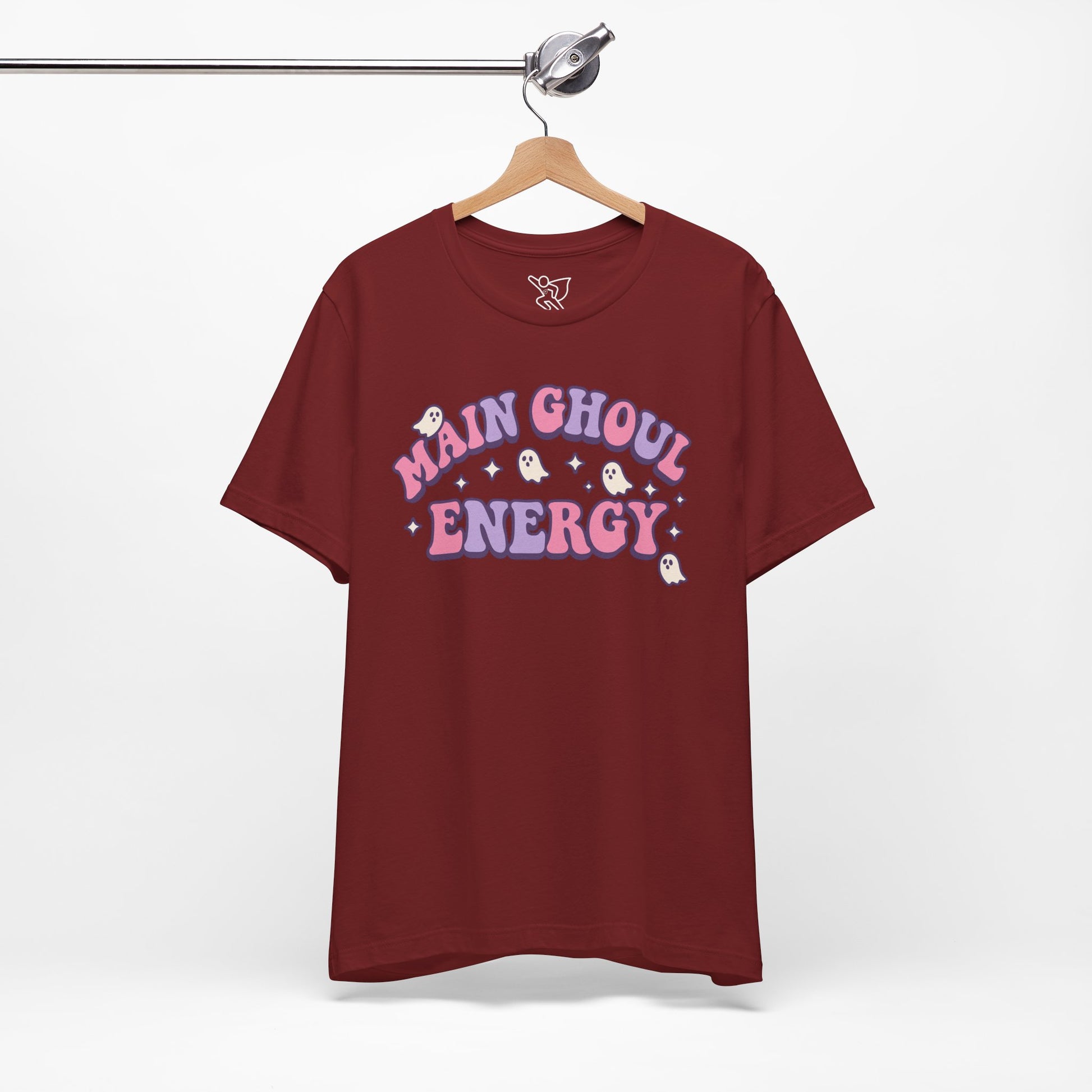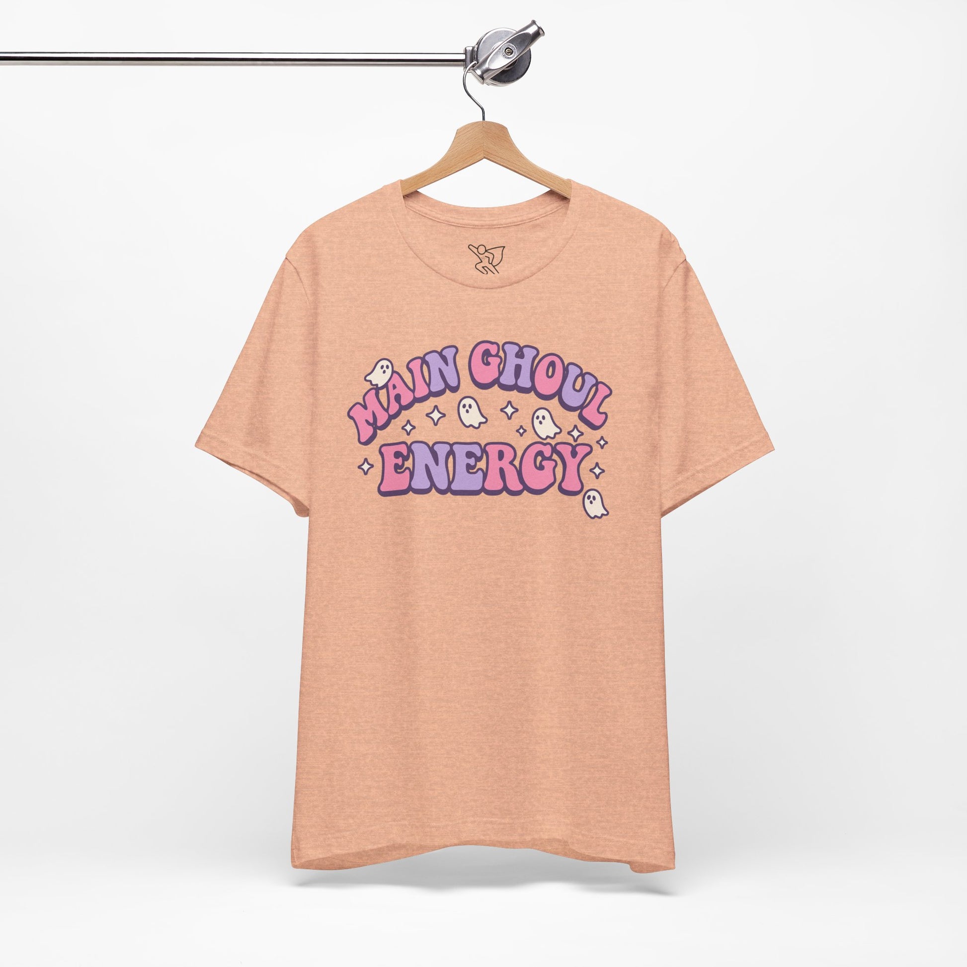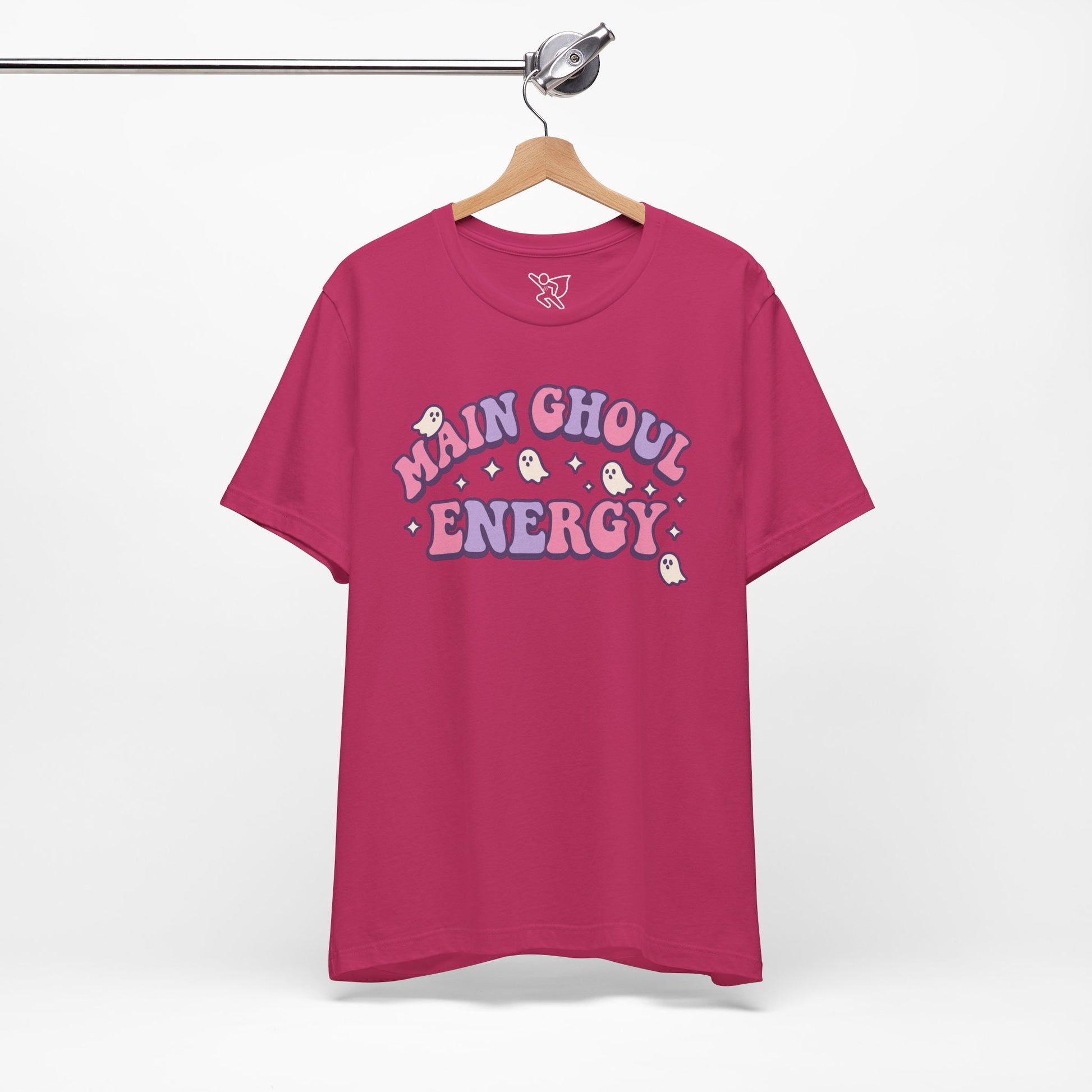 "Main Ghoul Energy" Unisex Short Sleeve T-Shirt, Halloween Party Shirt, Cute Graphic Tee, Gift for Ghost Lovers, Trendy Casual Wear