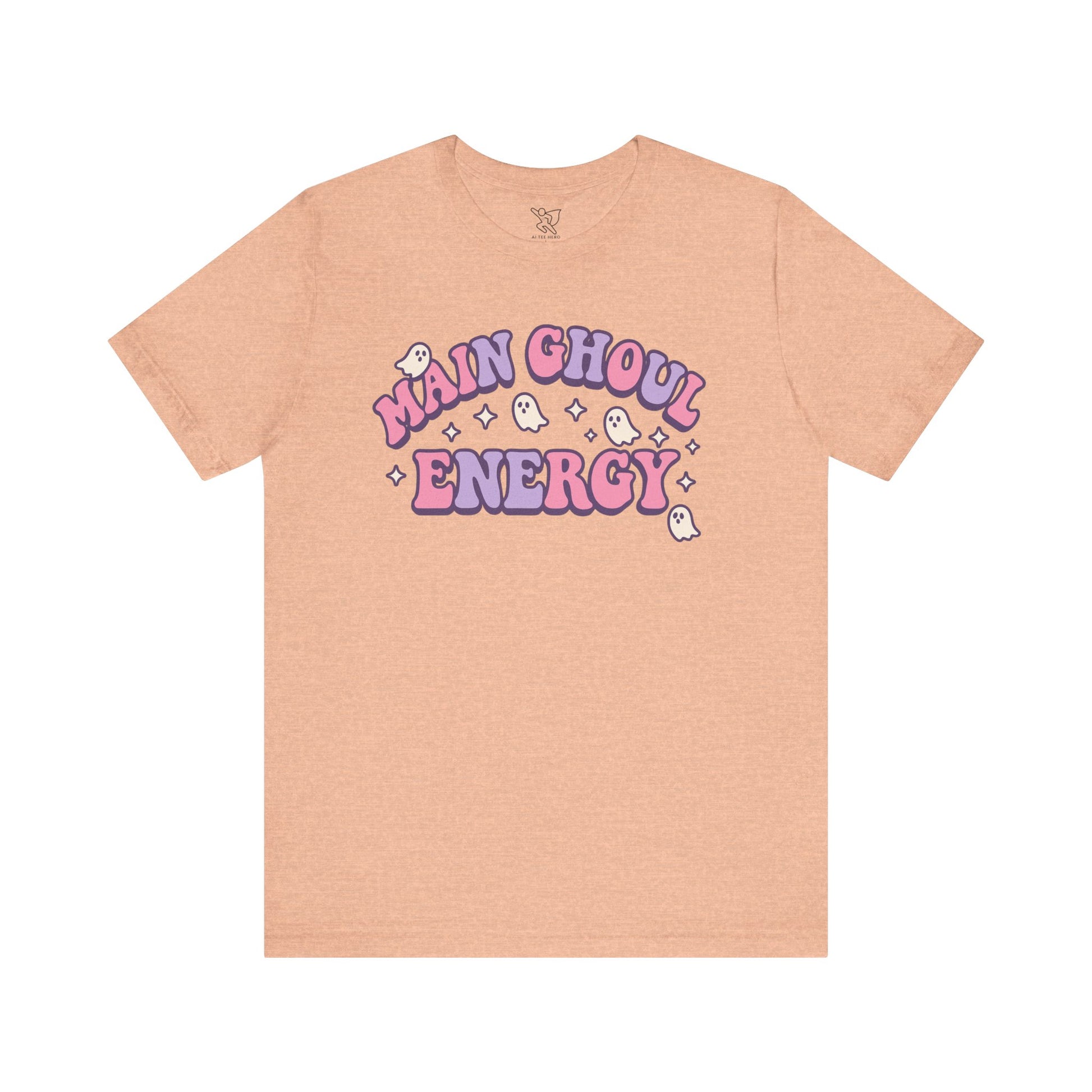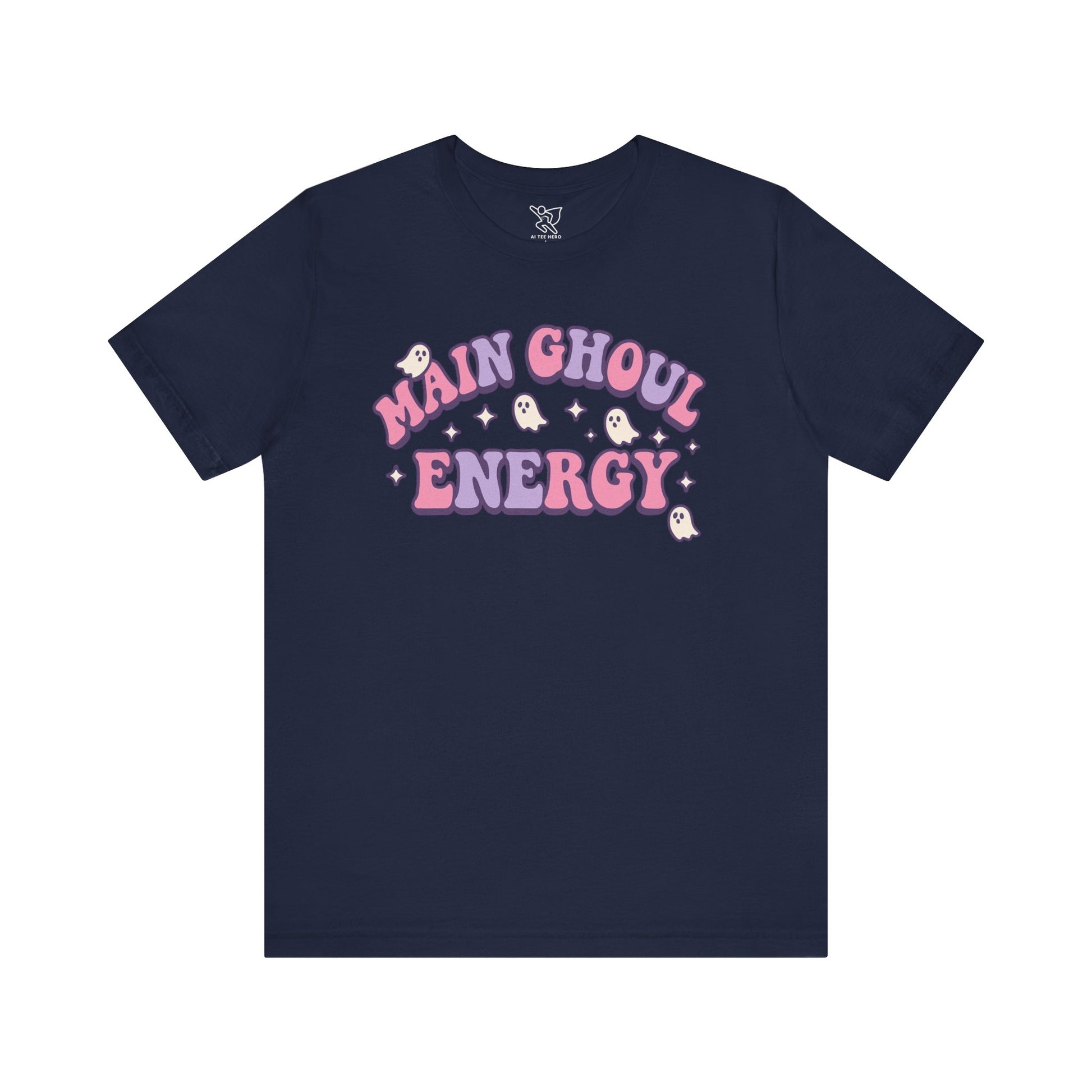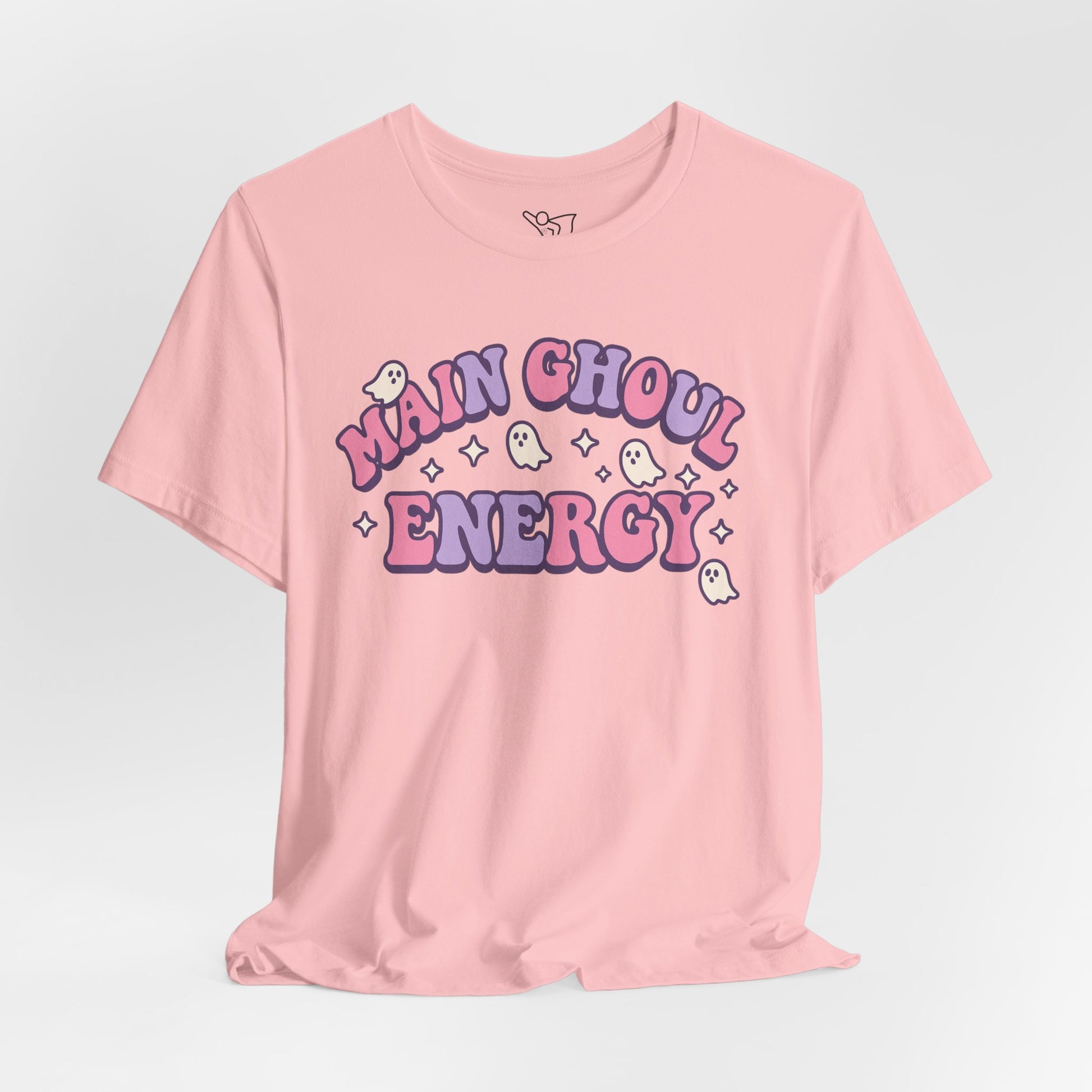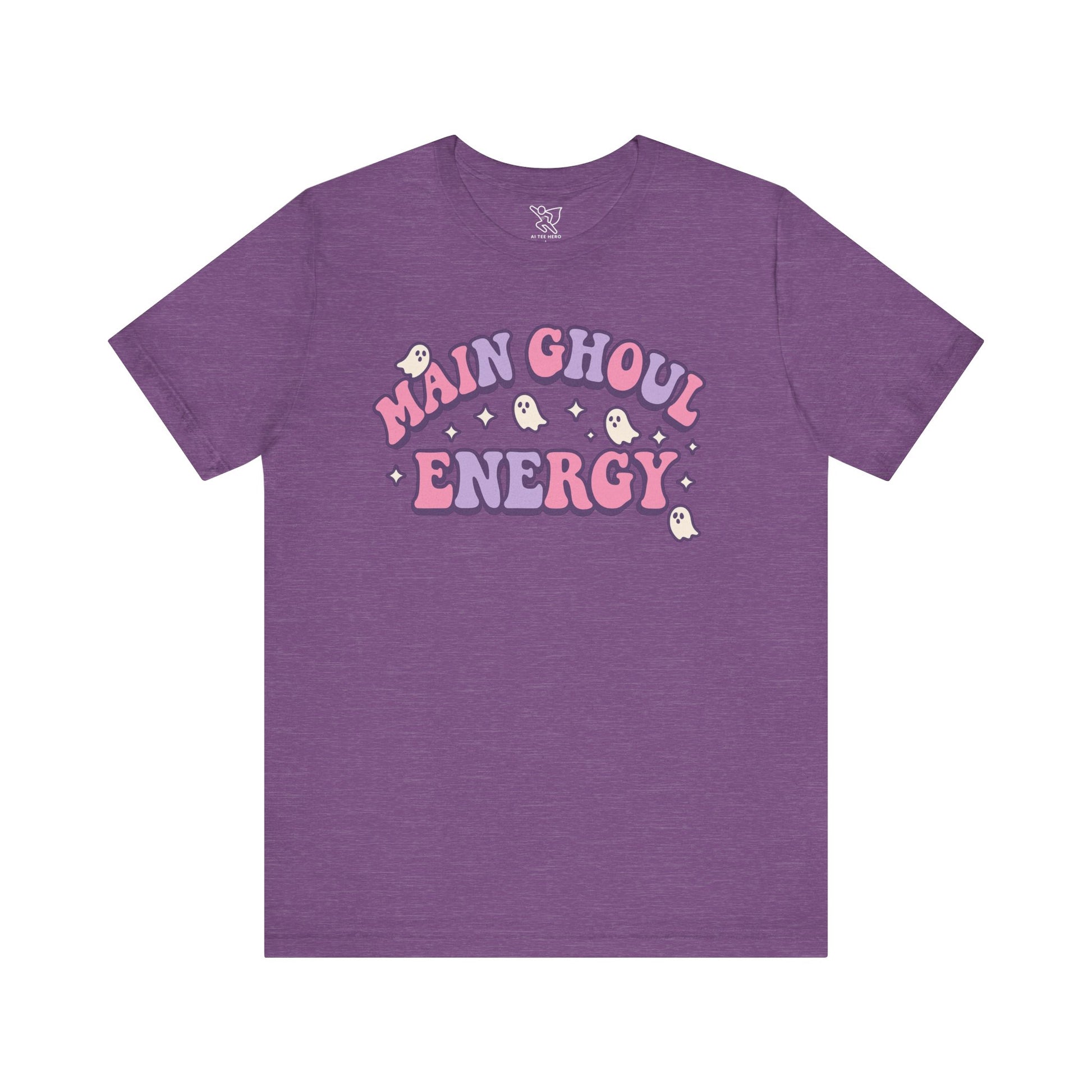 "Main Ghoul Energy" Unisex Short Sleeve T-Shirt, Halloween Party Shirt, Cute Graphic Tee, Gift for Ghost Lovers, Trendy Casual Wear