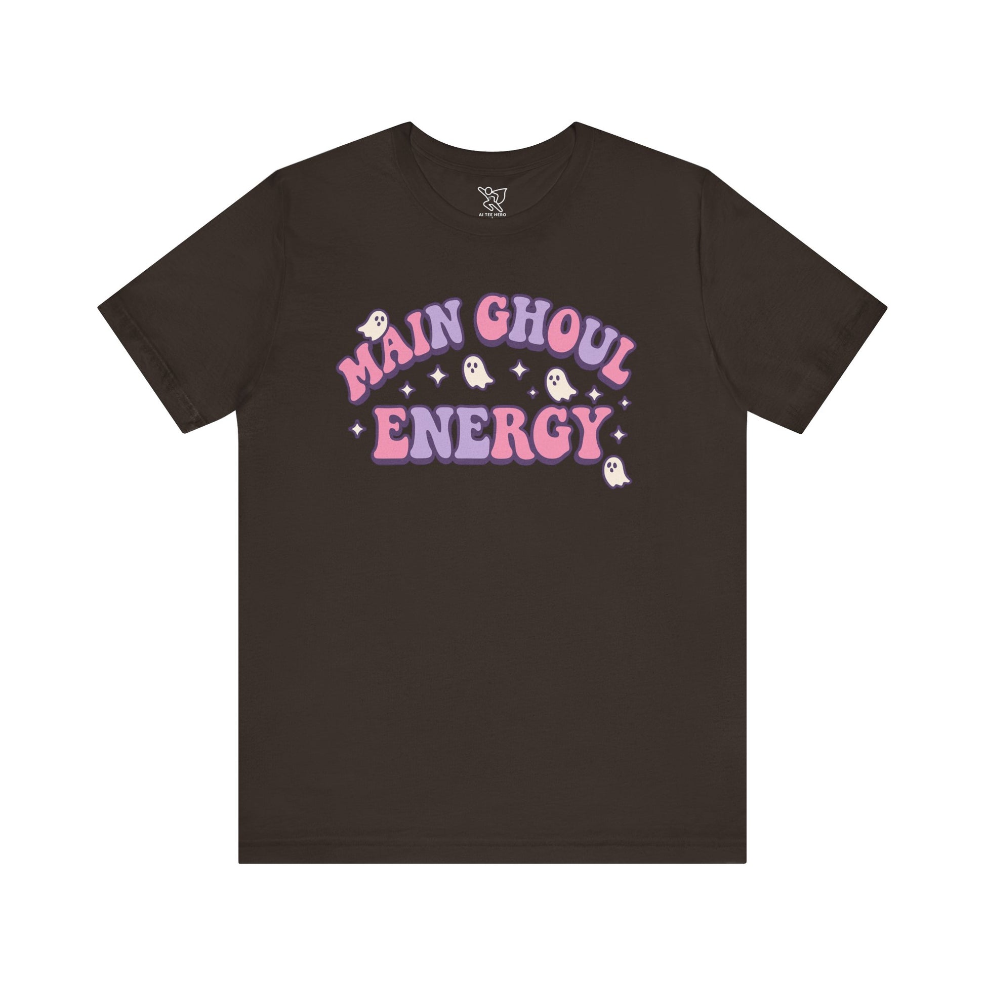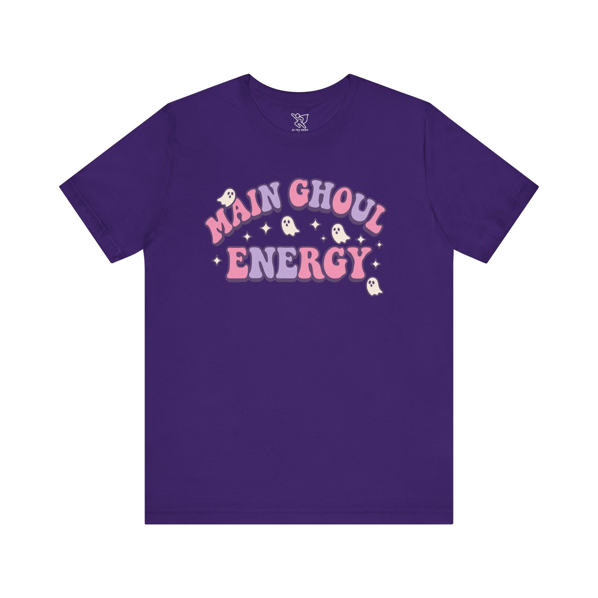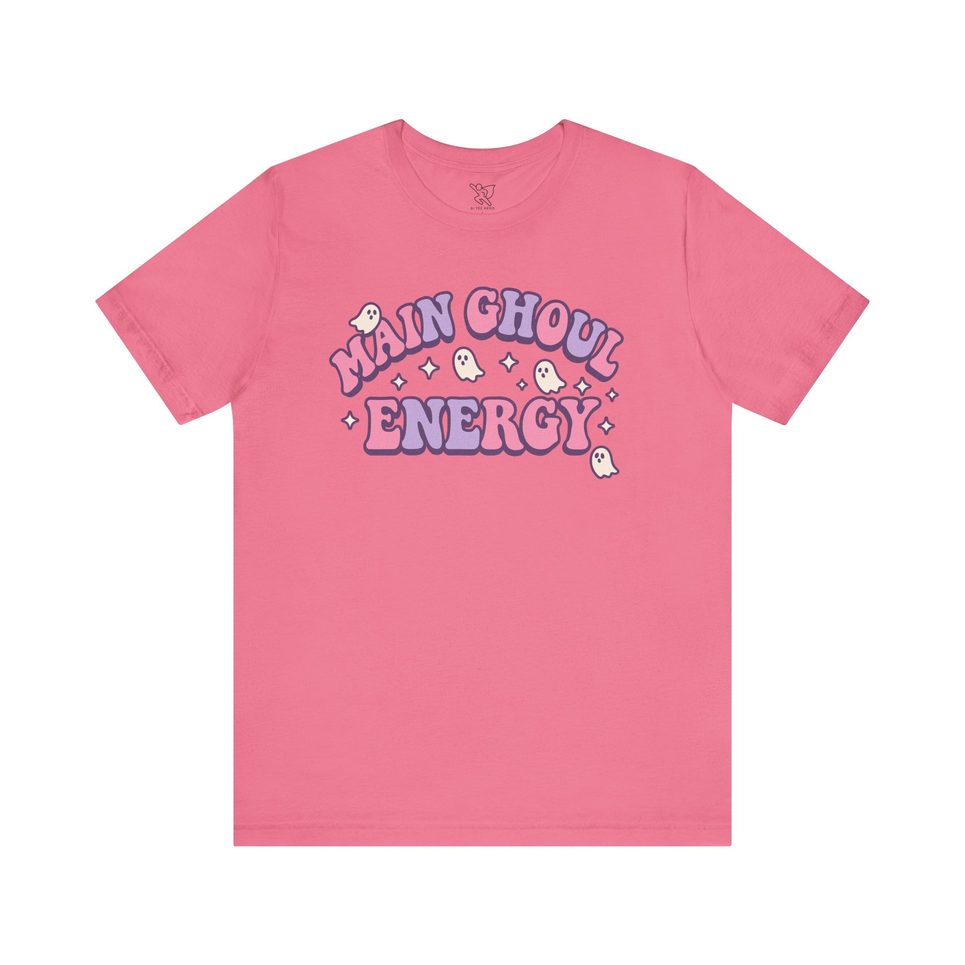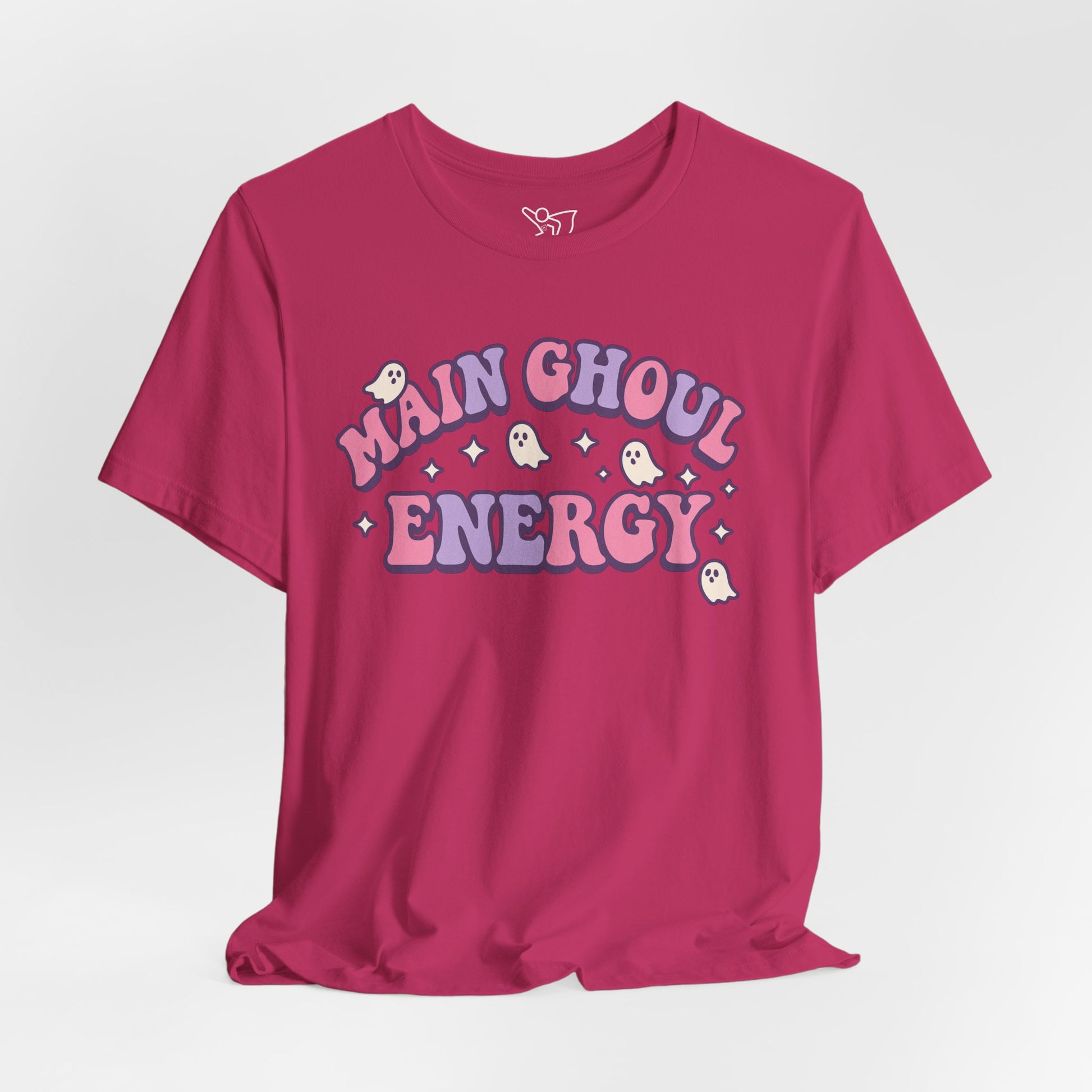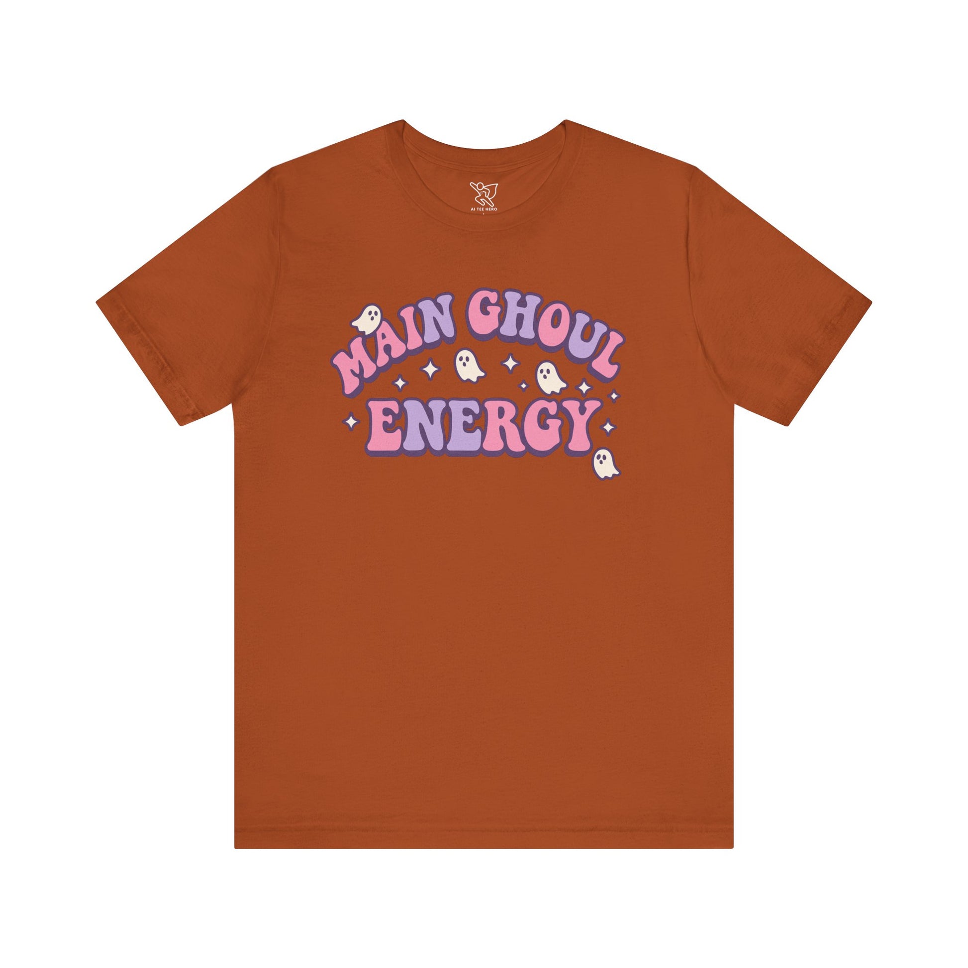 "Main Ghoul Energy" Unisex Short Sleeve T-Shirt, Halloween Party Shirt, Cute Graphic Tee, Gift for Ghost Lovers, Trendy Casual Wear