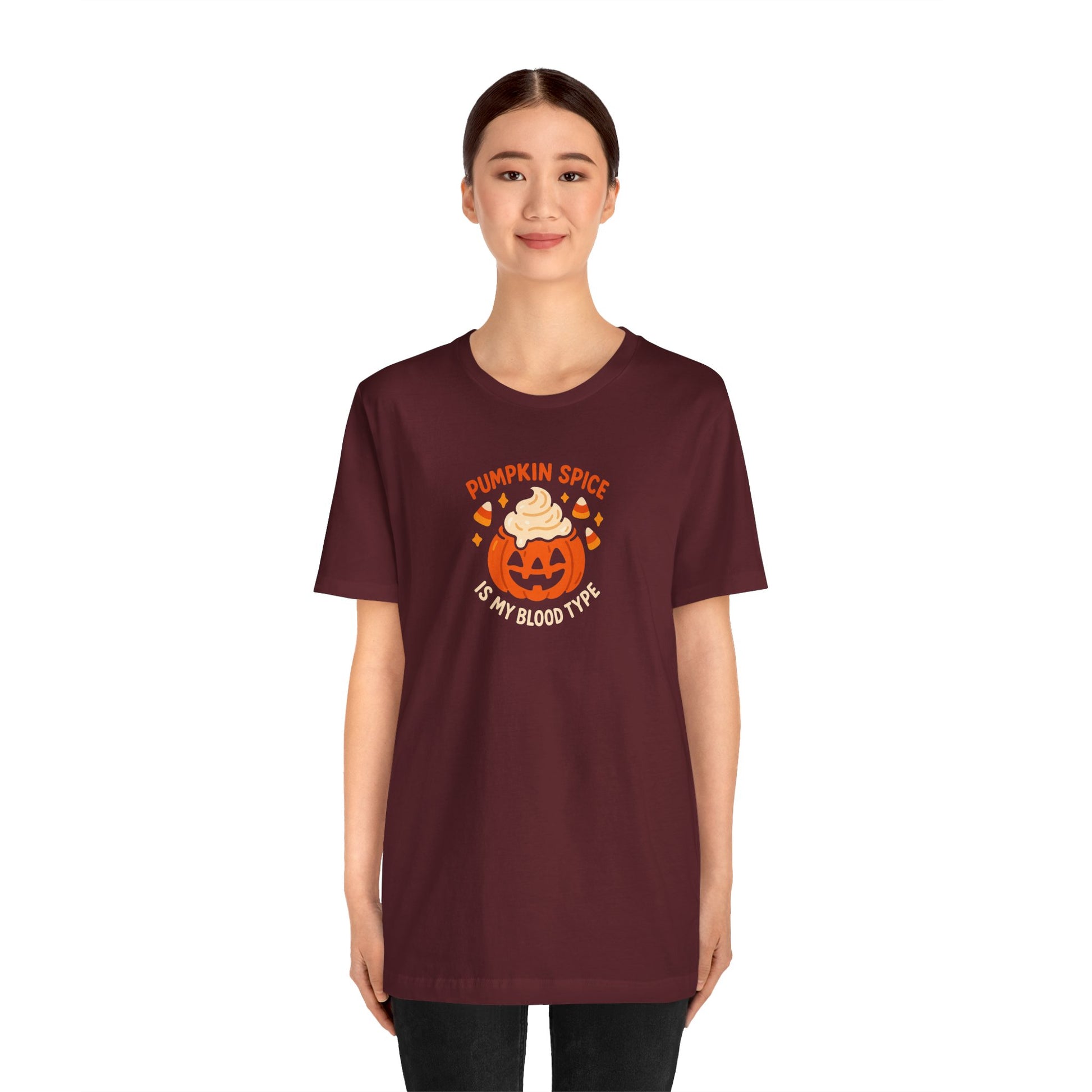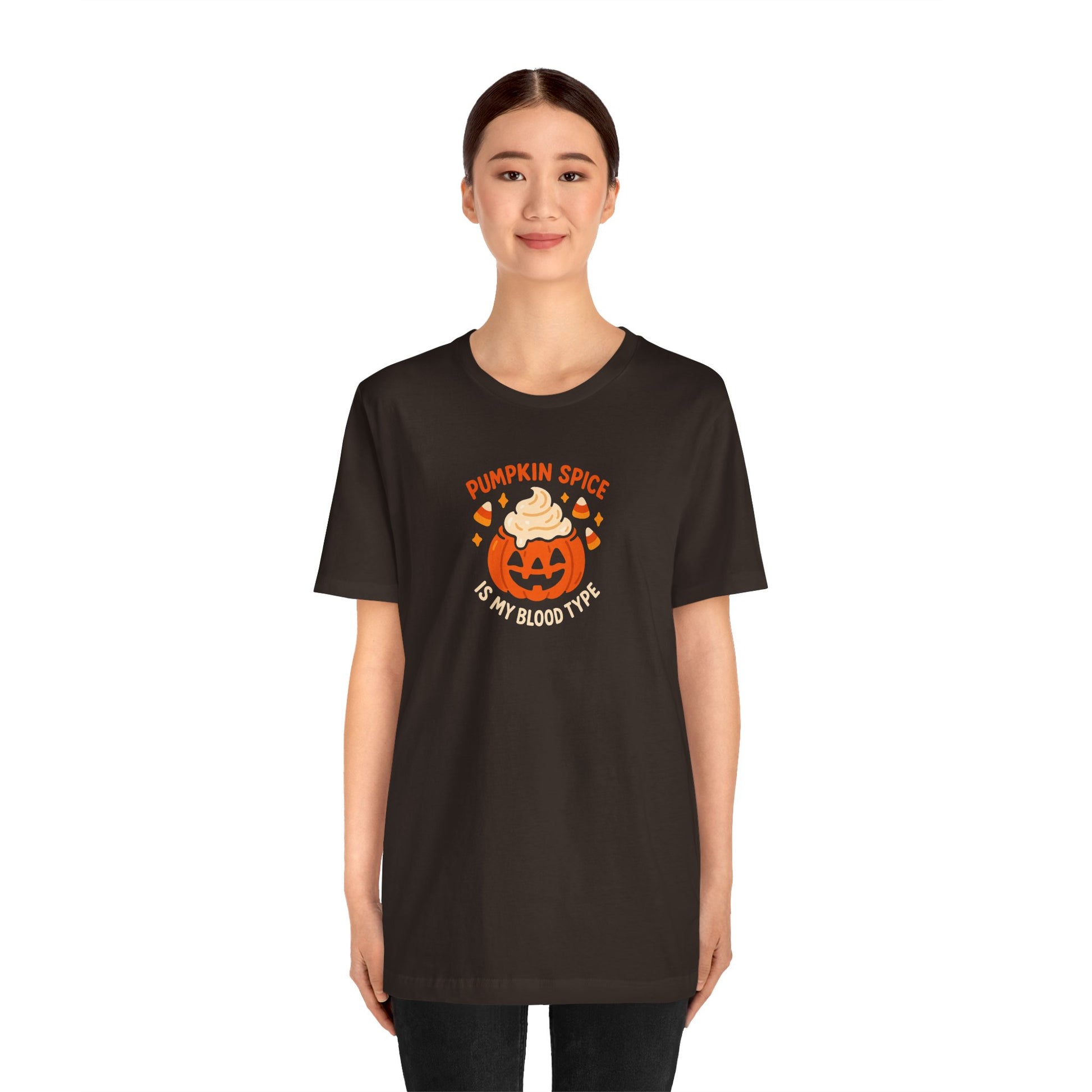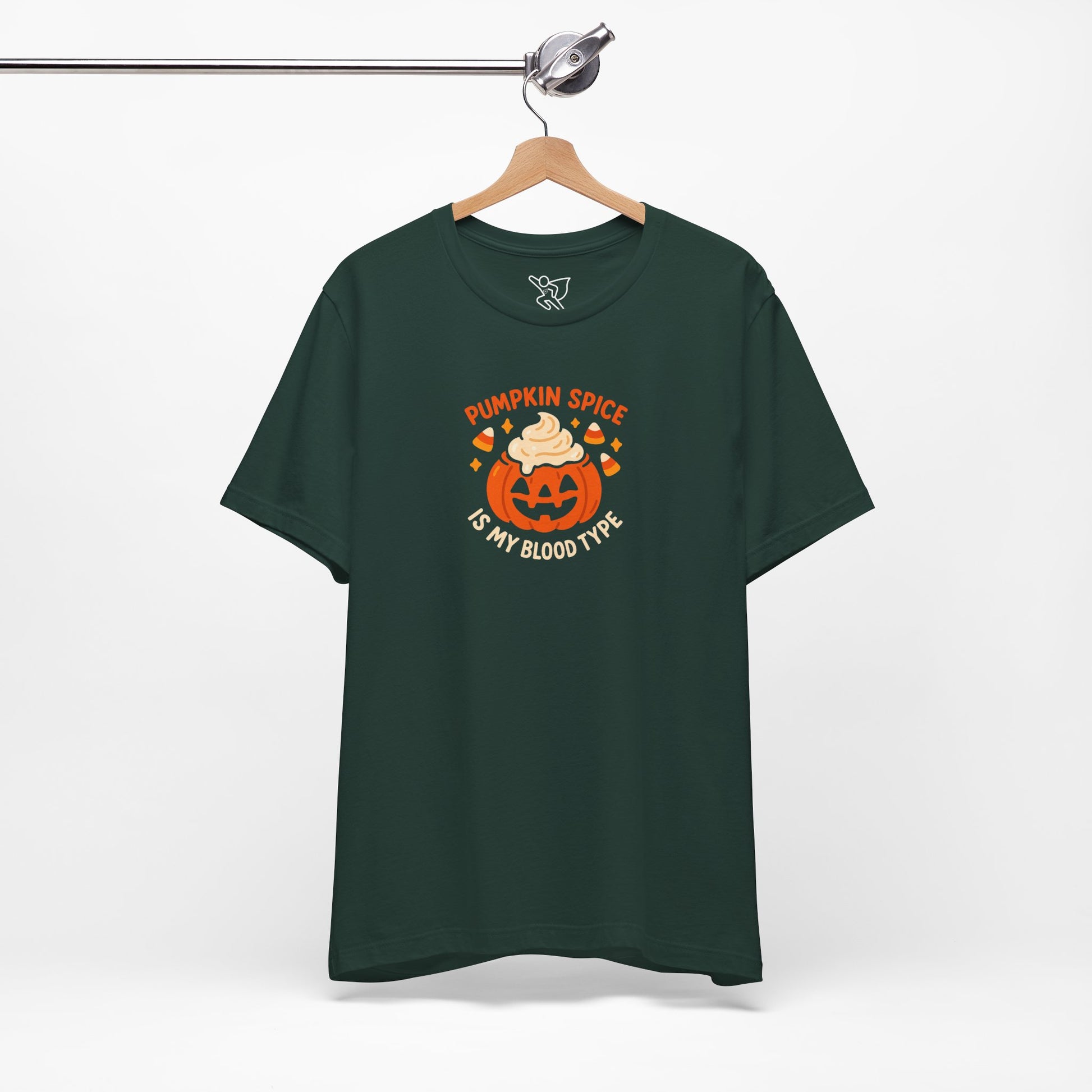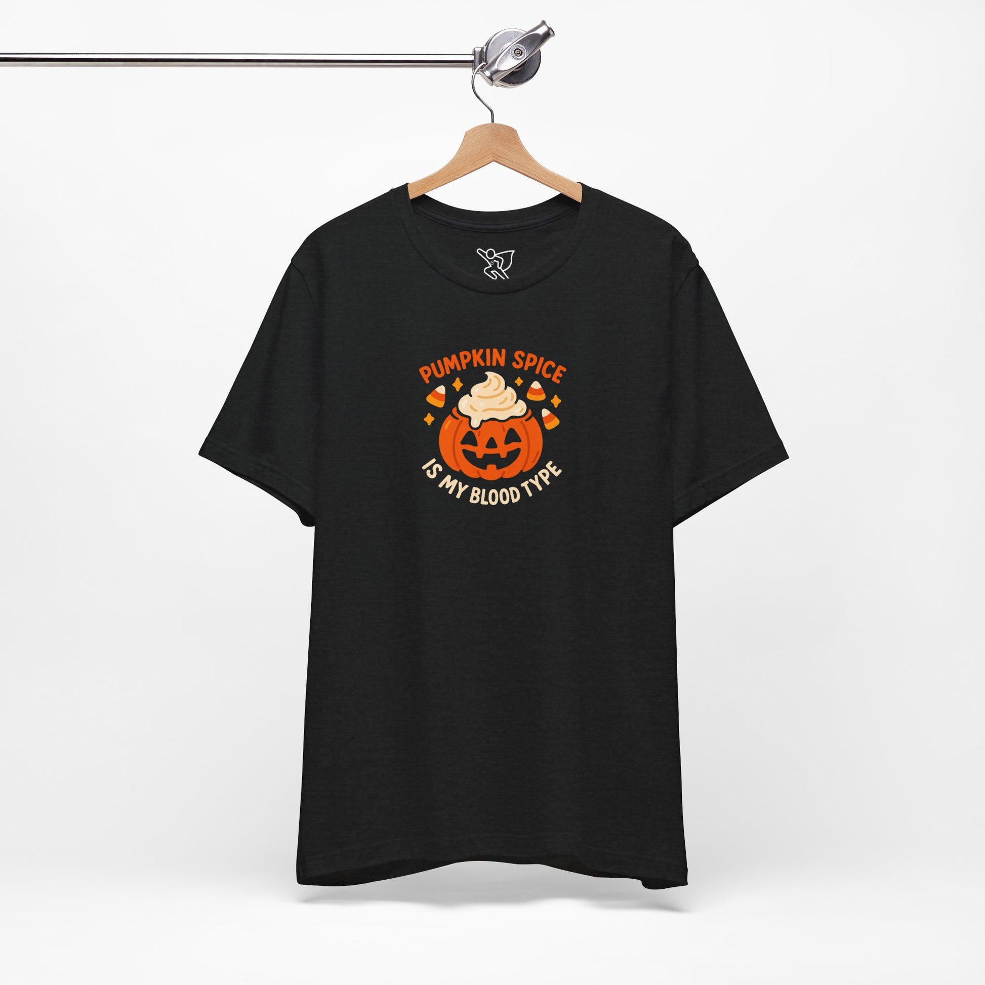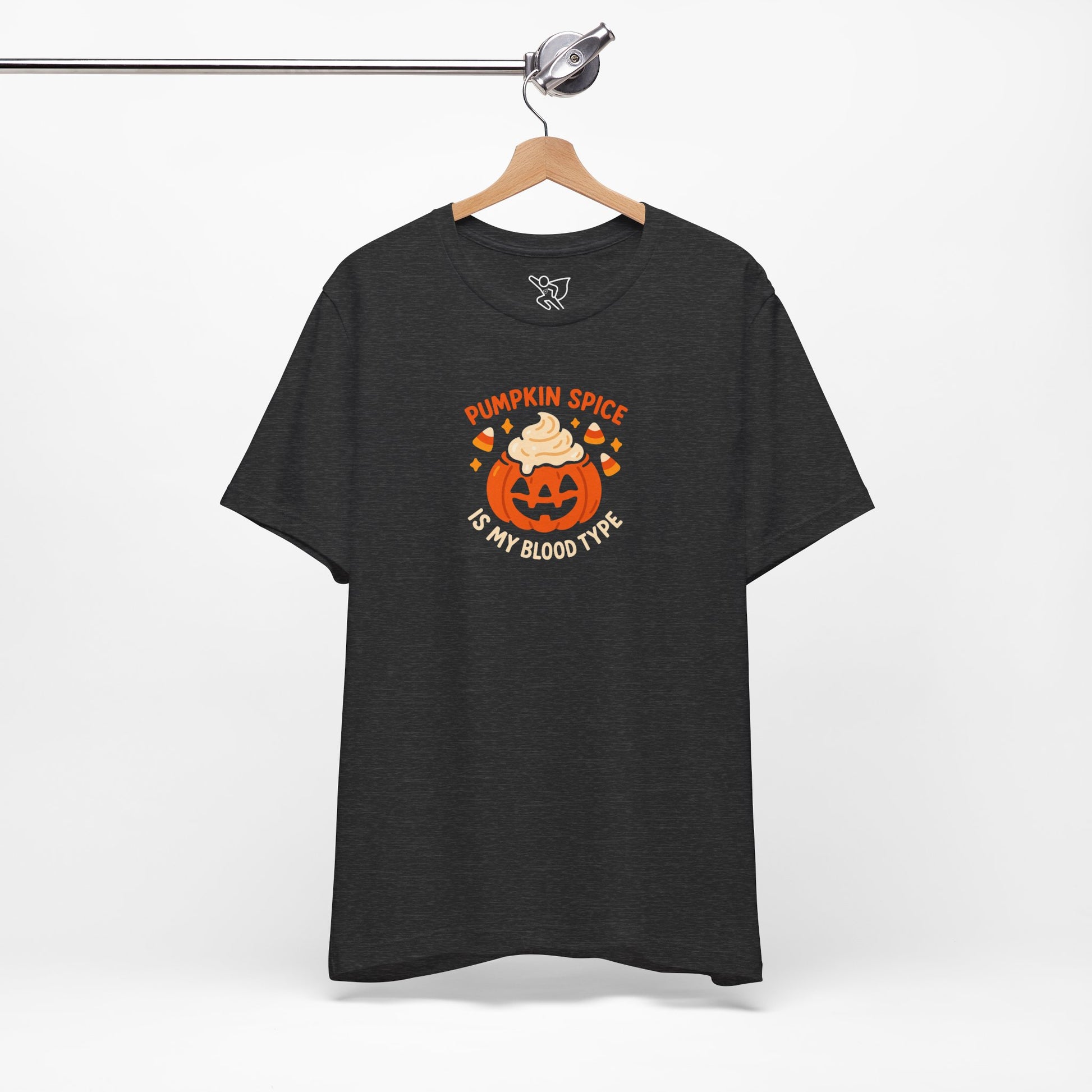 "Pumpkin Spice is My Blood Type" Short Sleeve Tee Fall Fashion, Halloween Shirt, Coffee Lover Gift, Autumn Wardrobe, Seasonal Tee