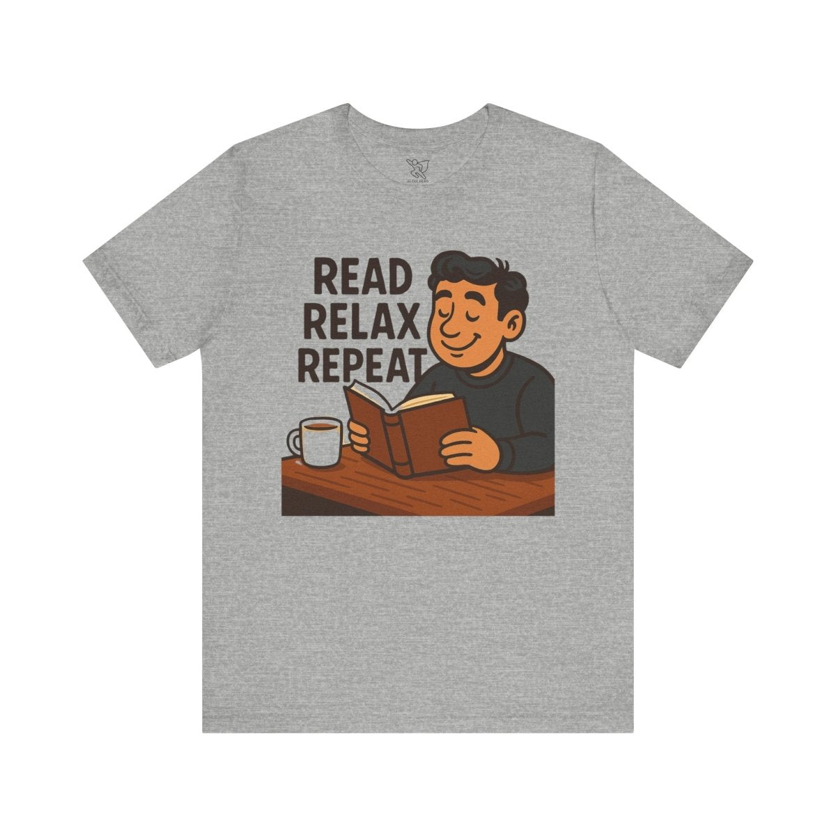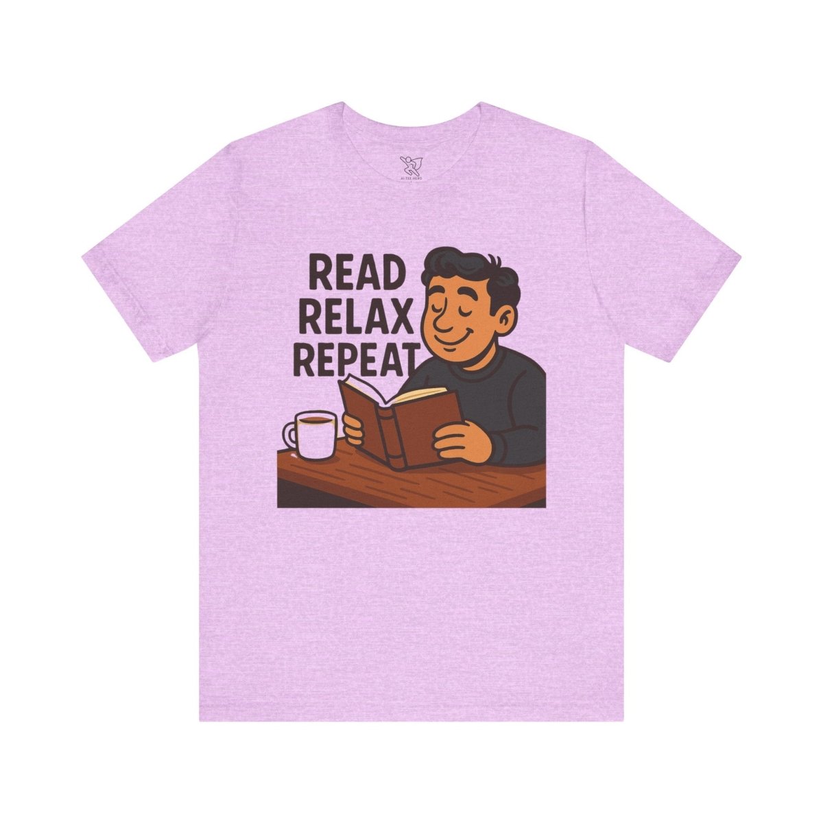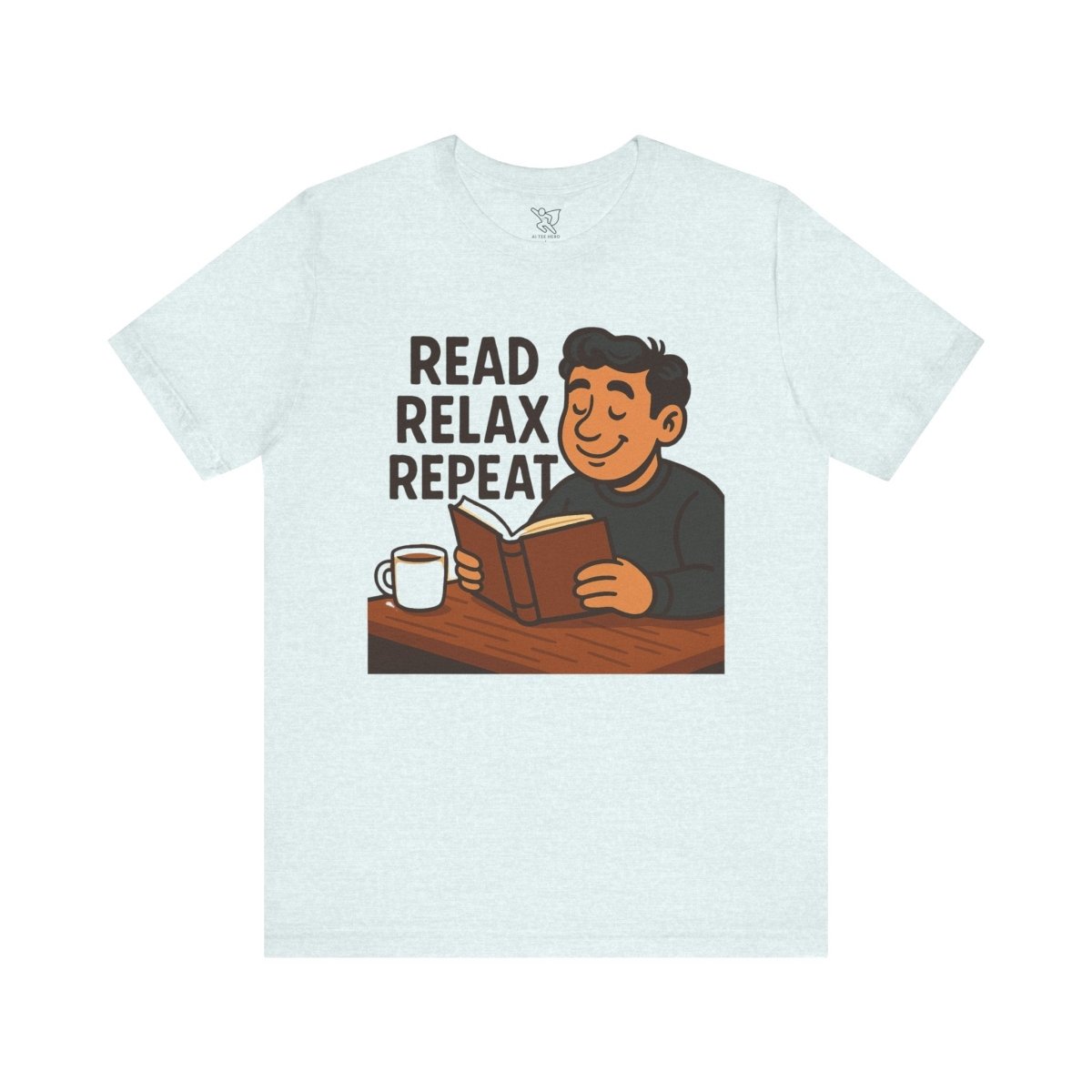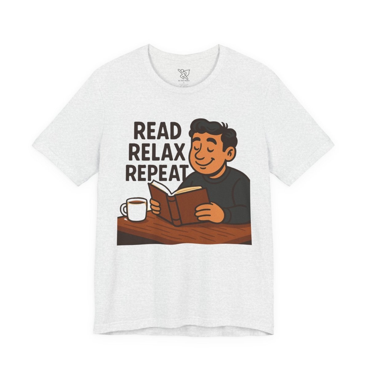 "Read. Relax. Repeat." Cozy Reading Shirt, Book Lover Gift, Unisex Casual Tee, Perfect for Book Clubs, Relaxing Days