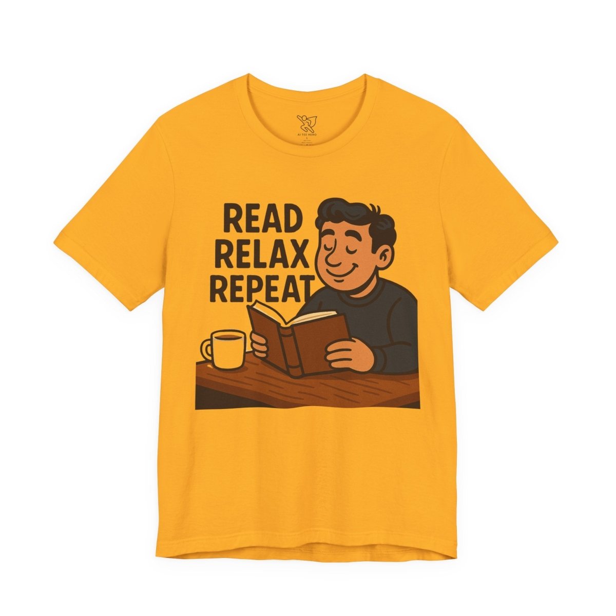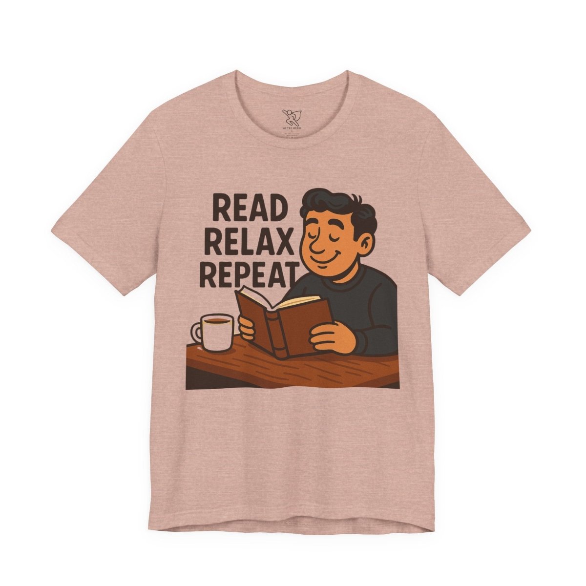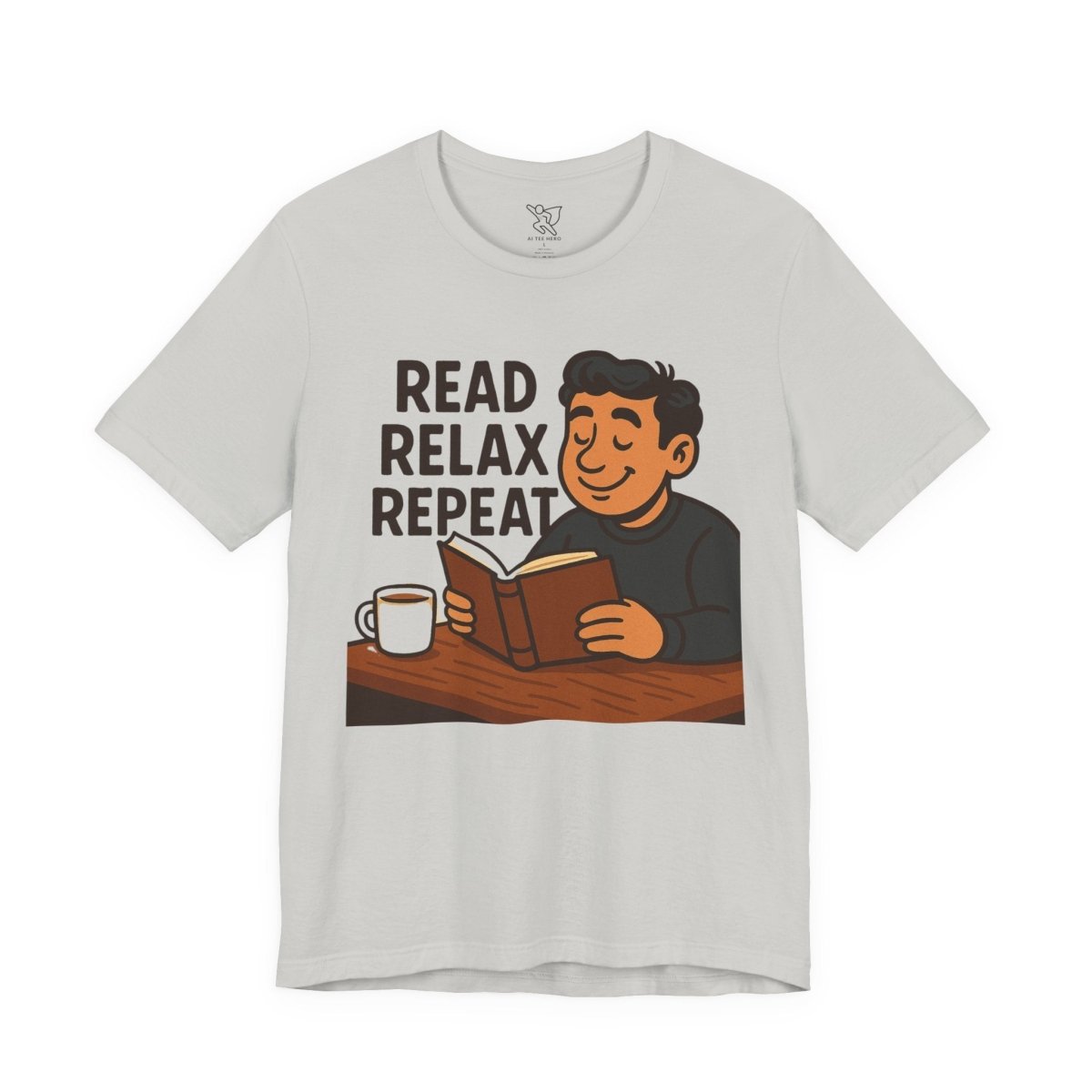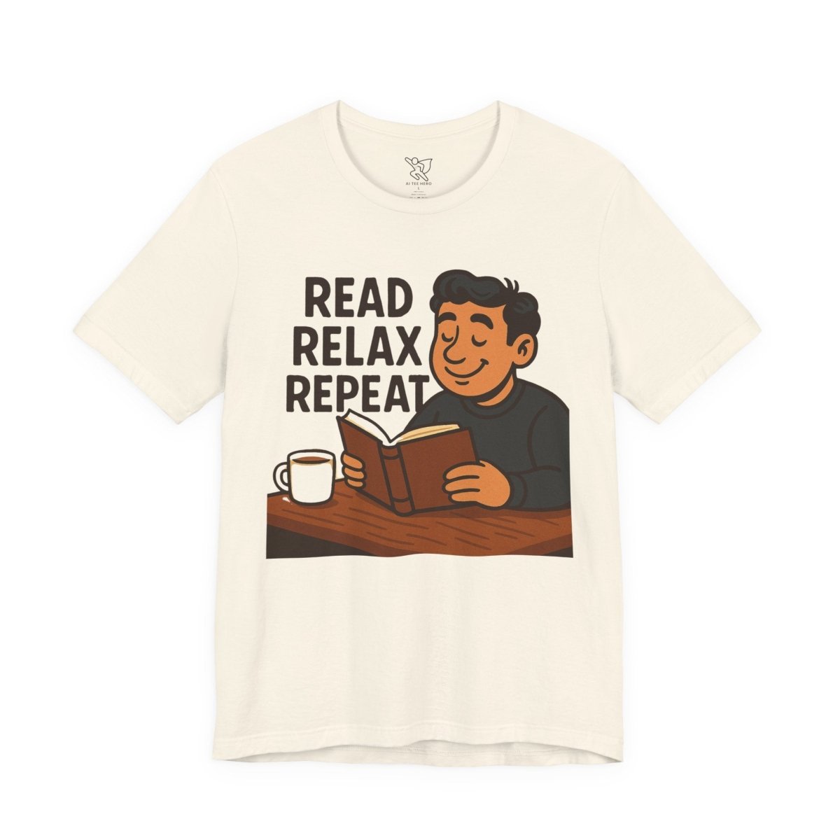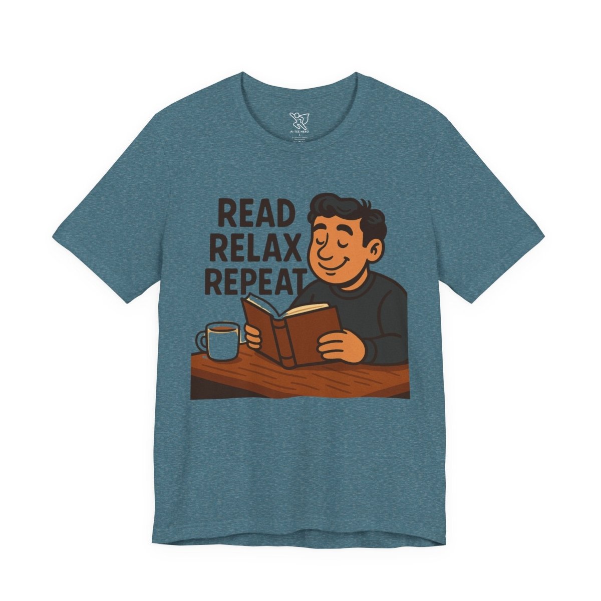 "Read. Relax. Repeat." Cozy Reading Shirt, Book Lover Gift, Unisex Casual Tee, Perfect for Book Clubs, Relaxing Days