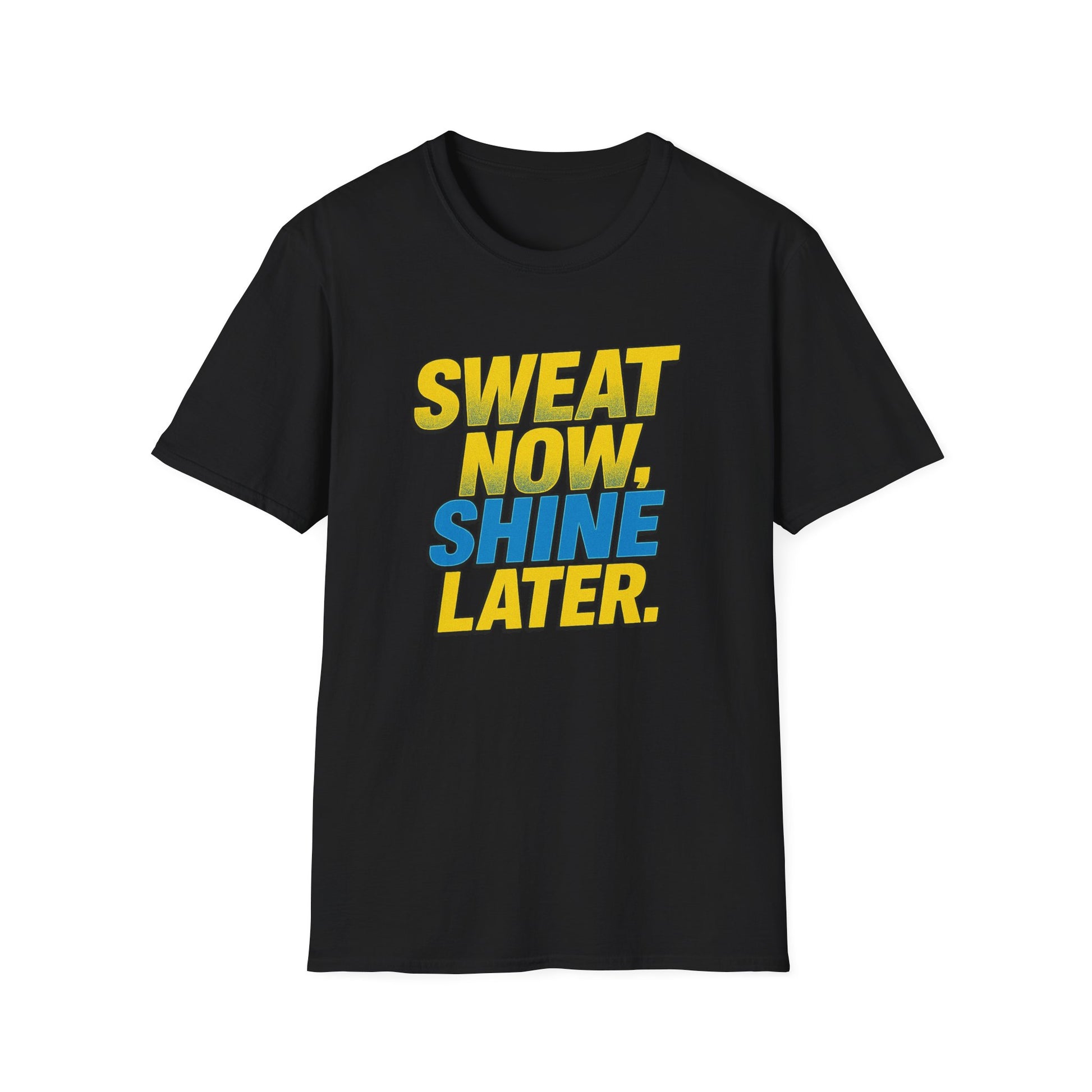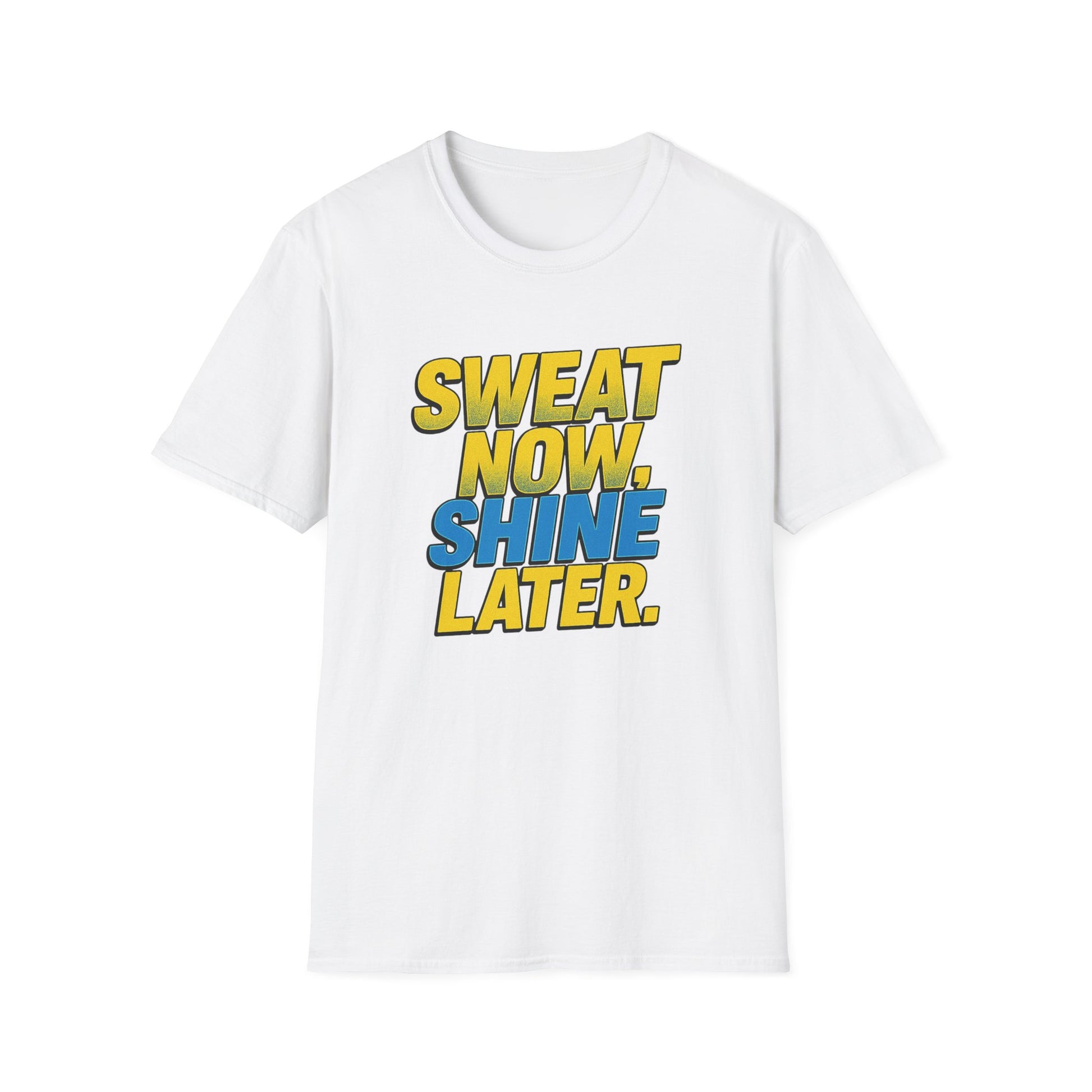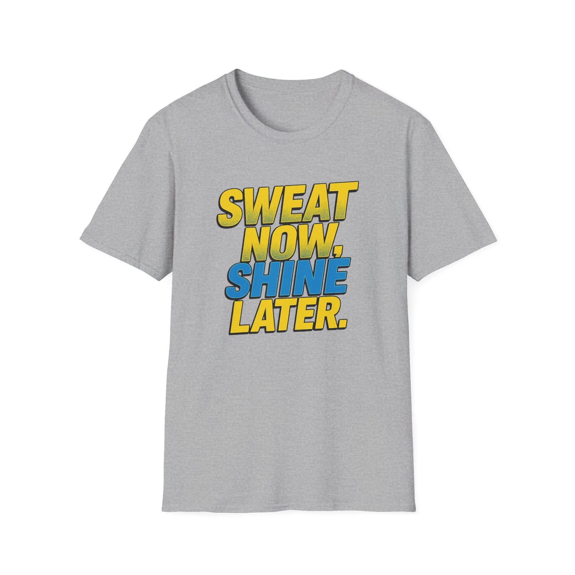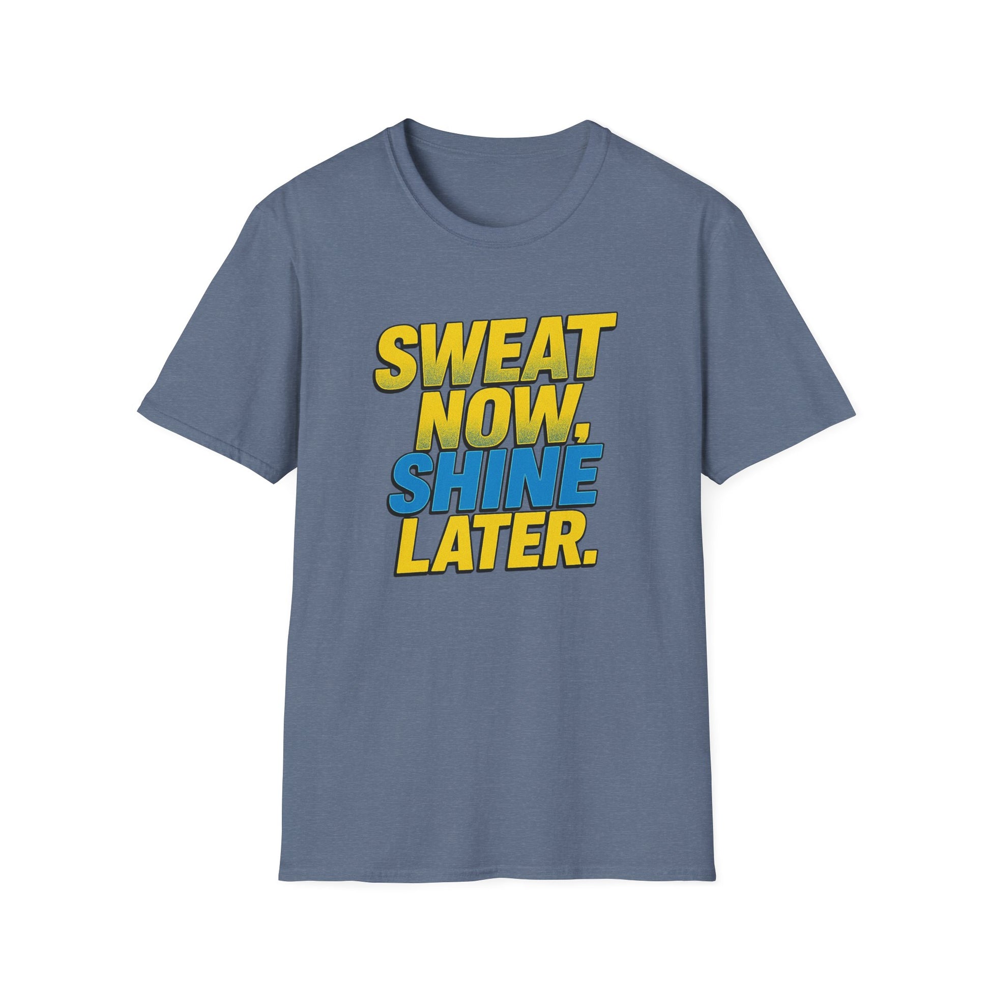 "Sweat Now, Shine Later." Motivational Unisex T-Shirt - Casual Tee for Fitness, Gym Wear, Inspirational Gift, Active Lifestyle Clothing
